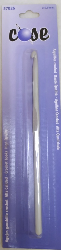 Agulha de crochet branca 5,0 mm na embalagem lilás da marca Close