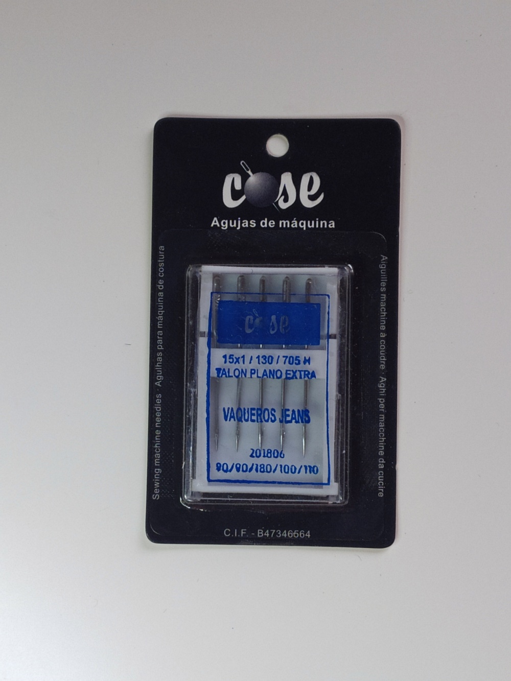 Agulhas de máquina para vaqueros jeans em embalagem preta