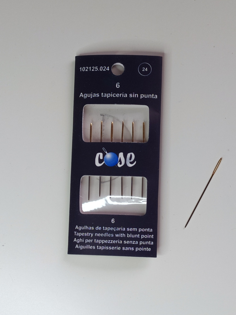 Pacote de agulhas de tapeçaria sem ponta em fundo branco.