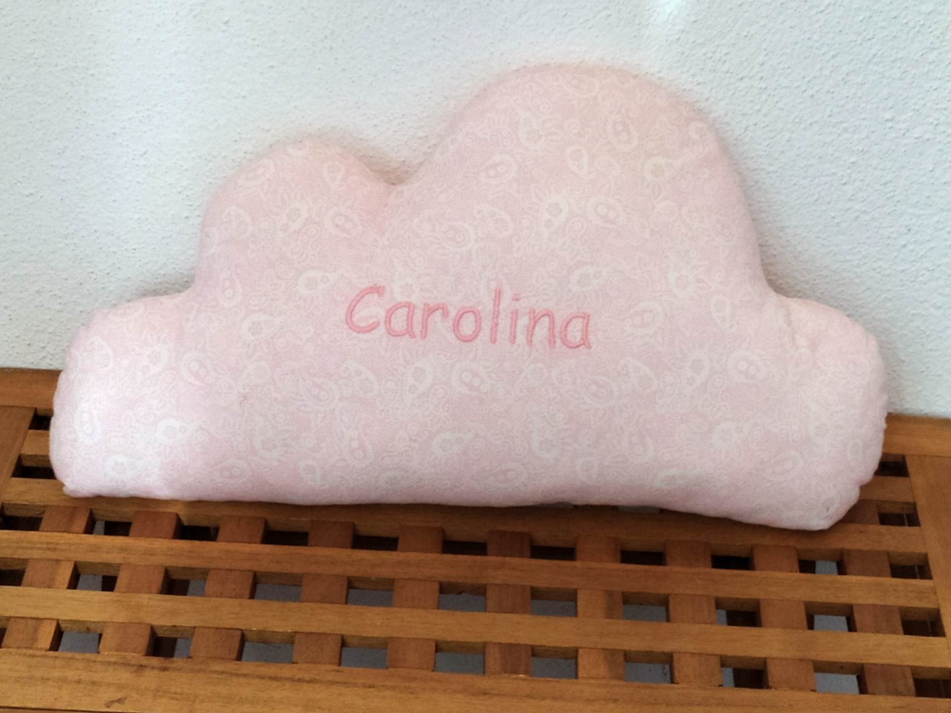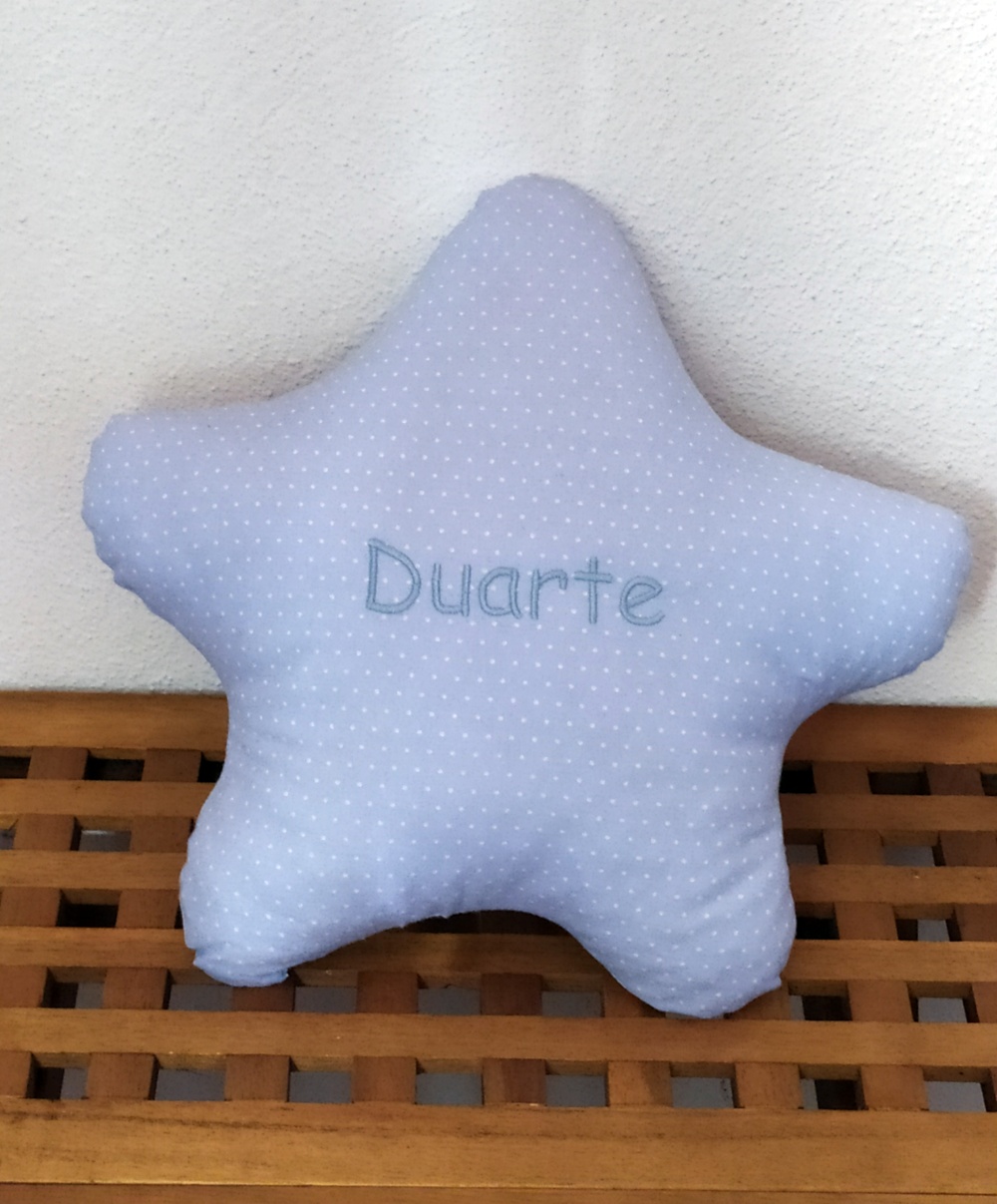Almofada em tecido de algodão. Tanto o tecido, o formato ou o nome pode ser escolhido pelo cliente. Para tal é favor enviar um email para: botaodareia@gmail.pt