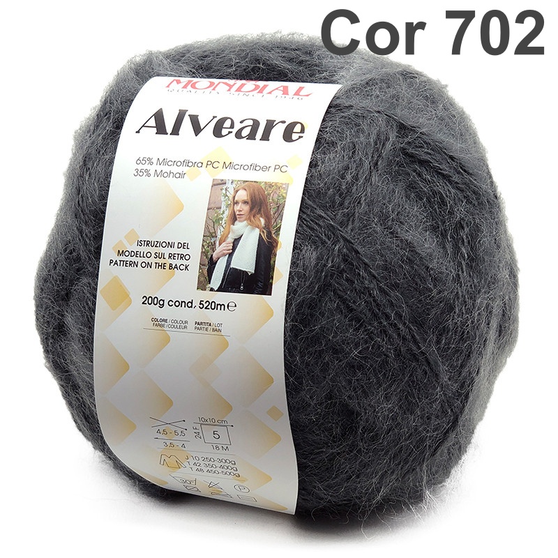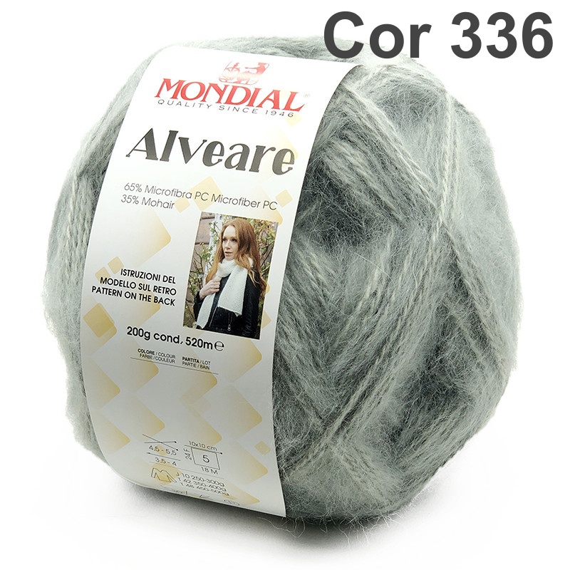Novelo de lã cinza Mondial Alveare Cor 336 com rótulo