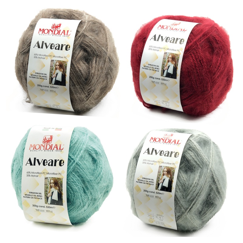 Novelos de lã Mondial Alveare em castanho, vermelho, verde e cinza