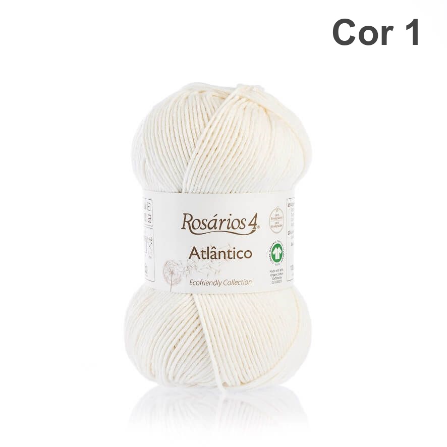 Novelo de lã branca Rosários 4 Atlântico em fundo branco
