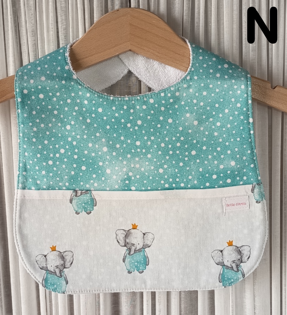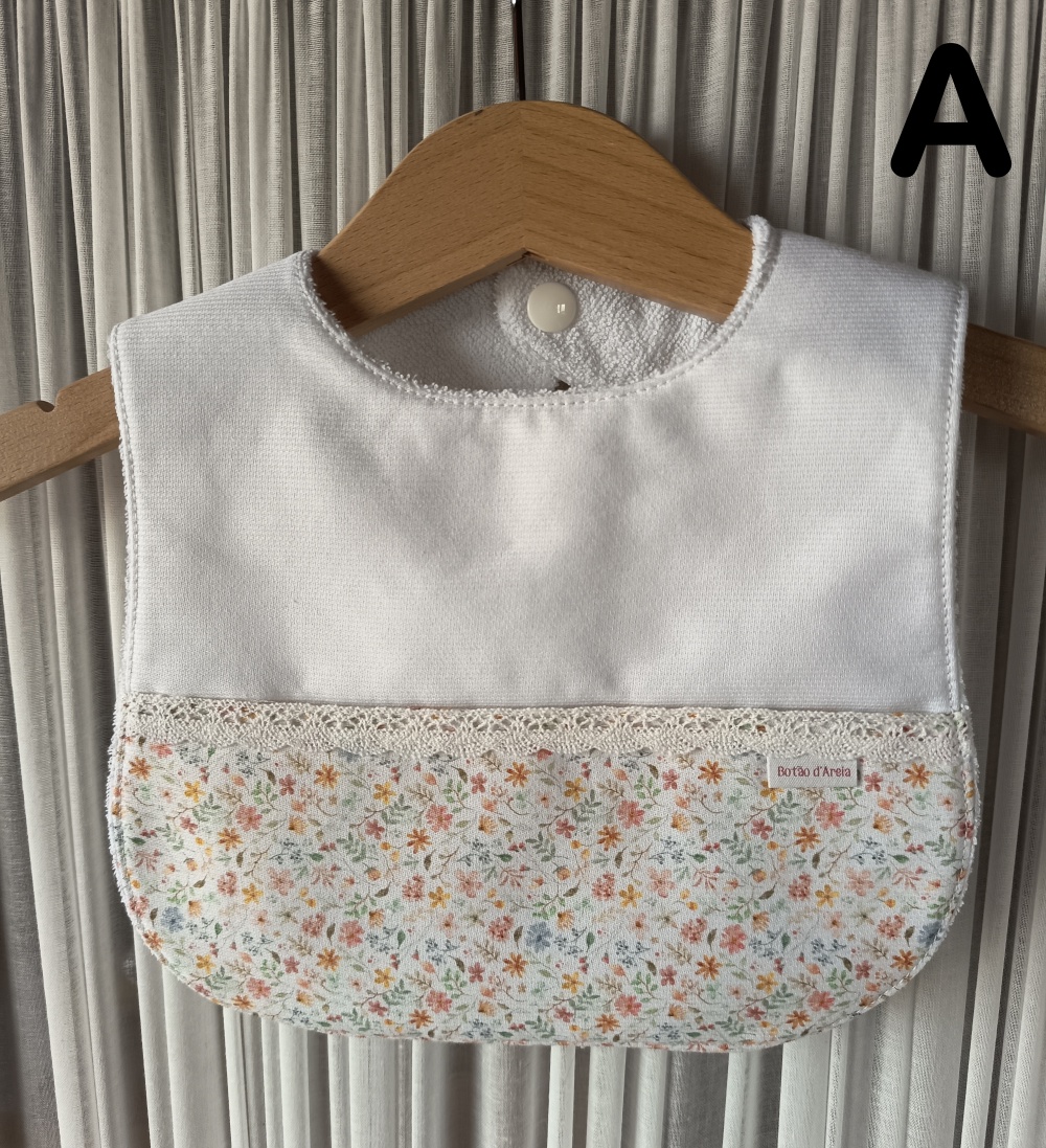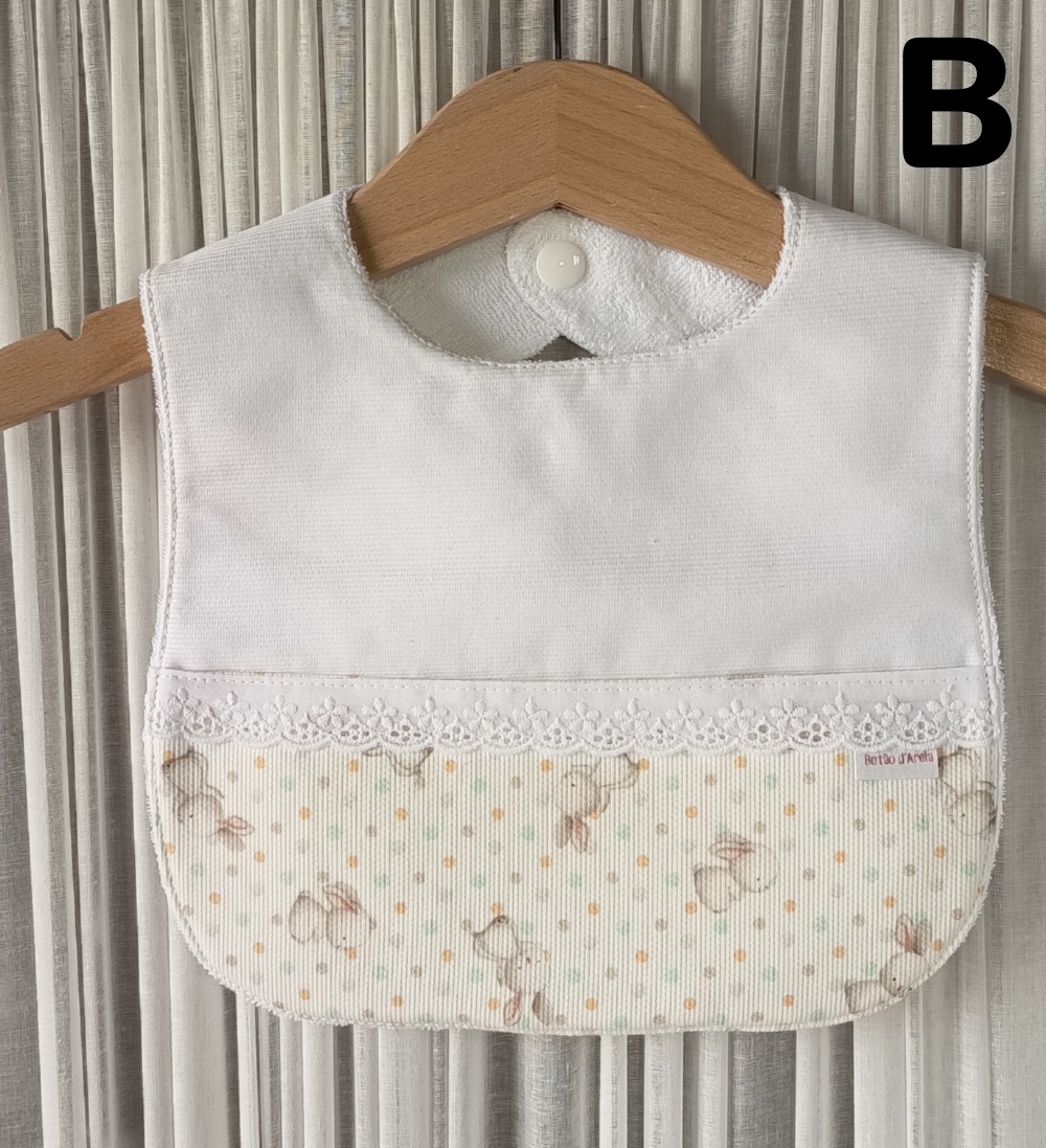 Babete em tecido 100% algodão, forrada com turco impermeável, anti alérgico e anti bacteriano.