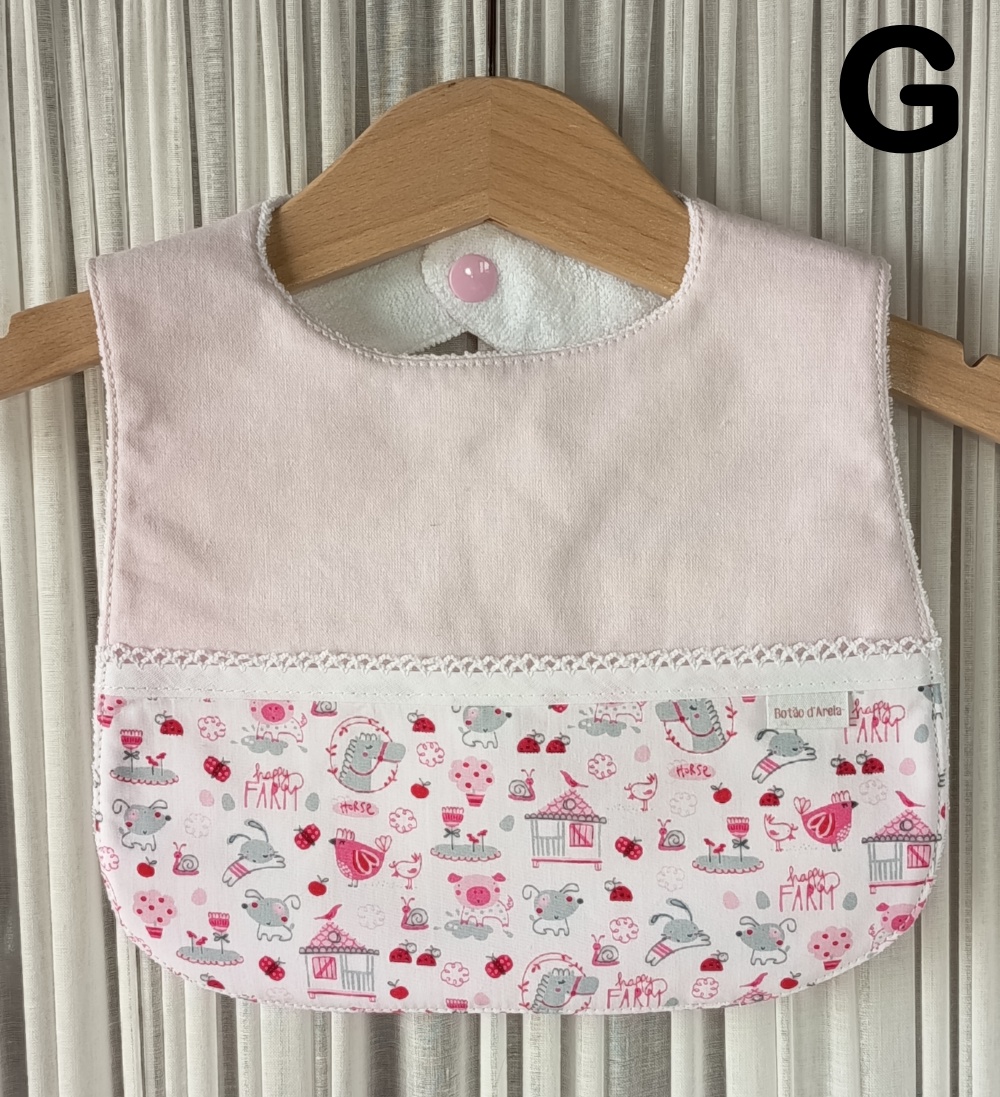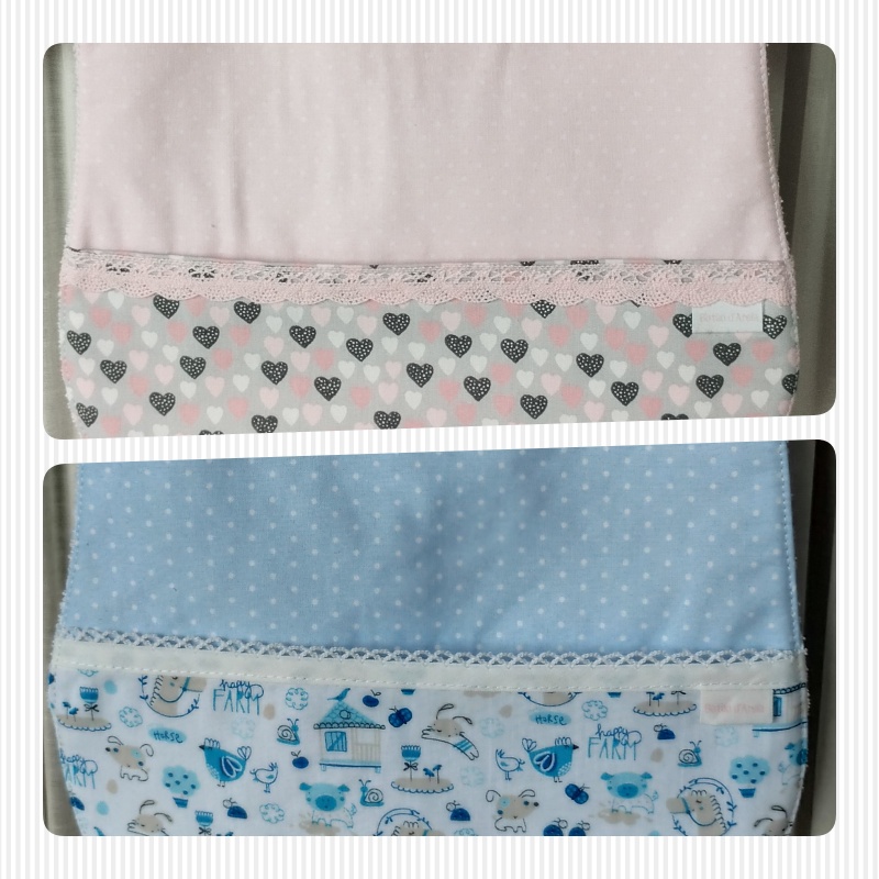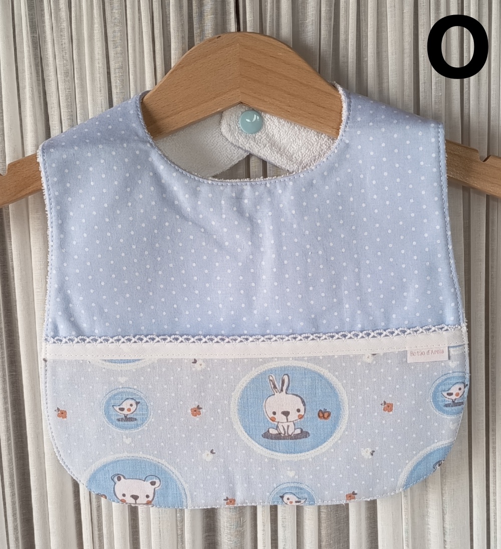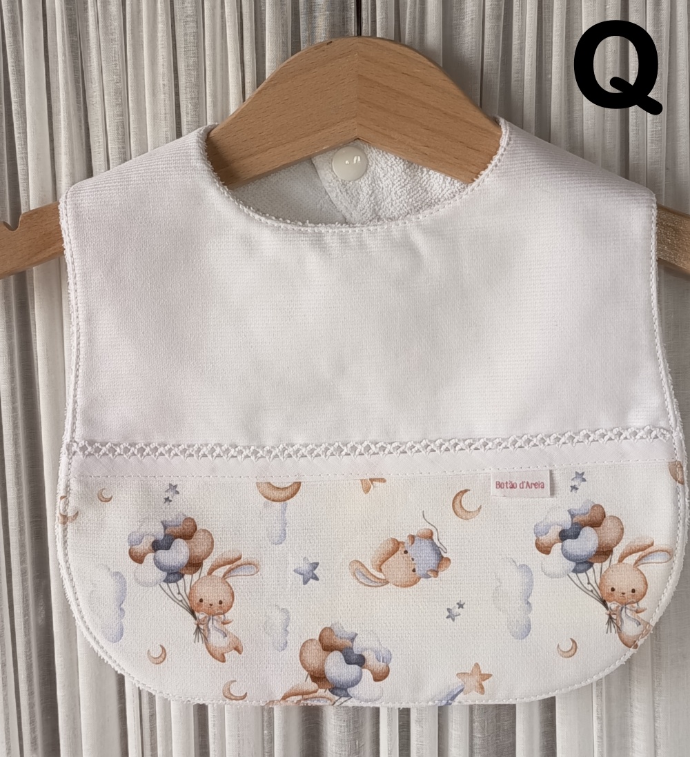 Babete em tecido 100% algodão, forrada com turco impermeável, anti alérgico e anti bacteriano.