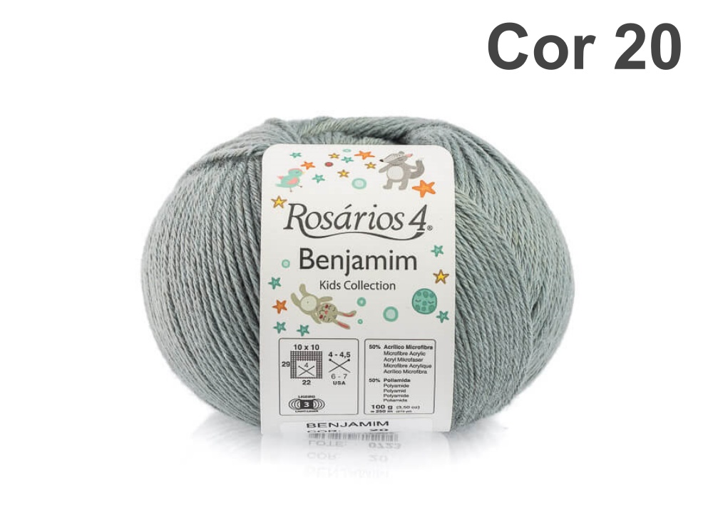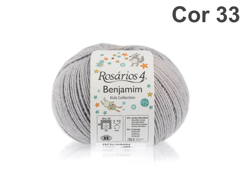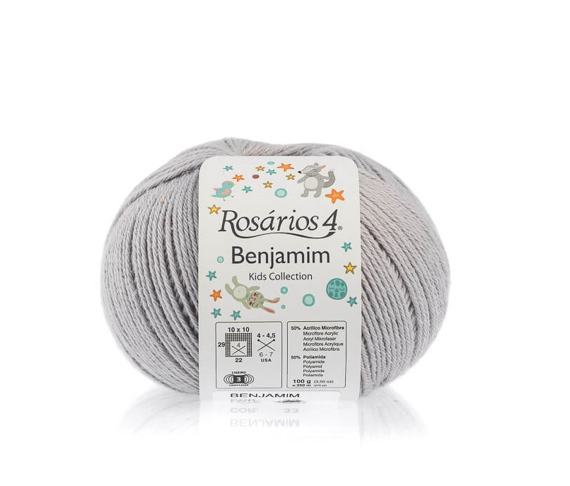 Novelo de fio cinzento claro Rosários 4 Kids Collection com etiqueta