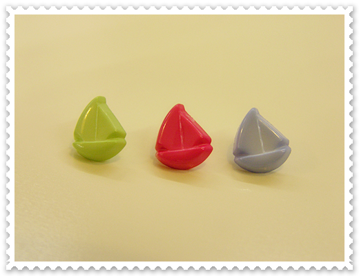Três peões coloridos em forma de barco à vela