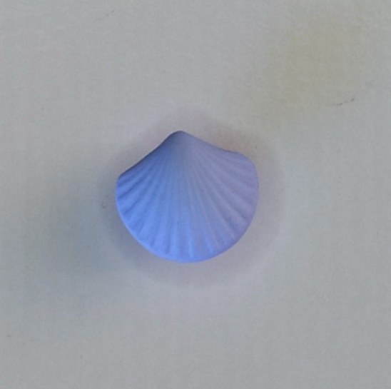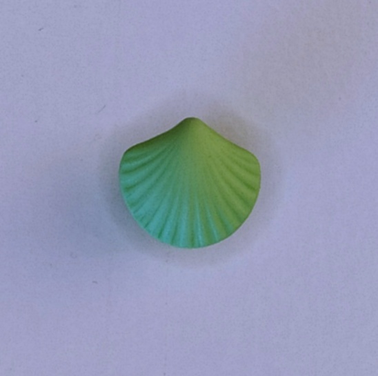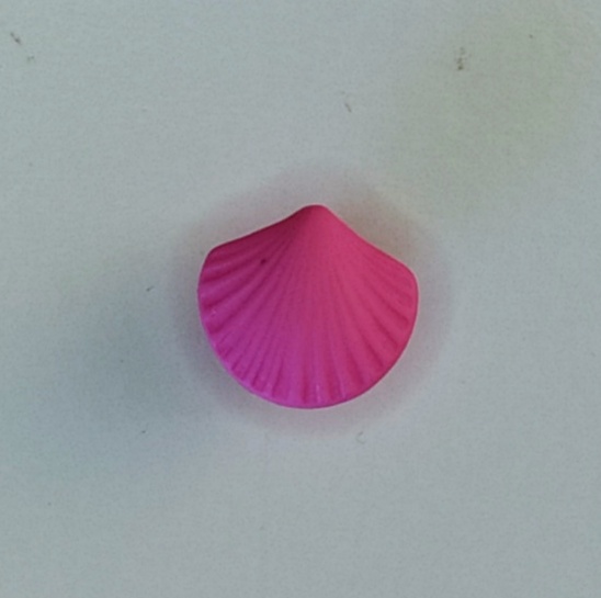 Escultura pequena rosa em forma de concha sobre fundo branco