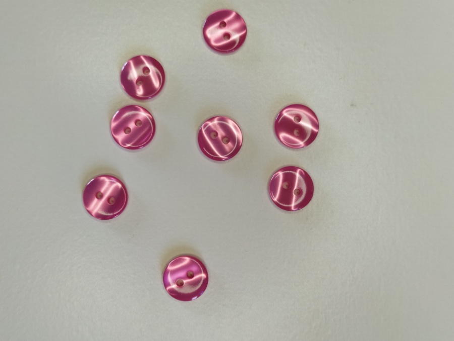 Botões redondos rosa fluorescente com quatro orifícios sobre fundo branco