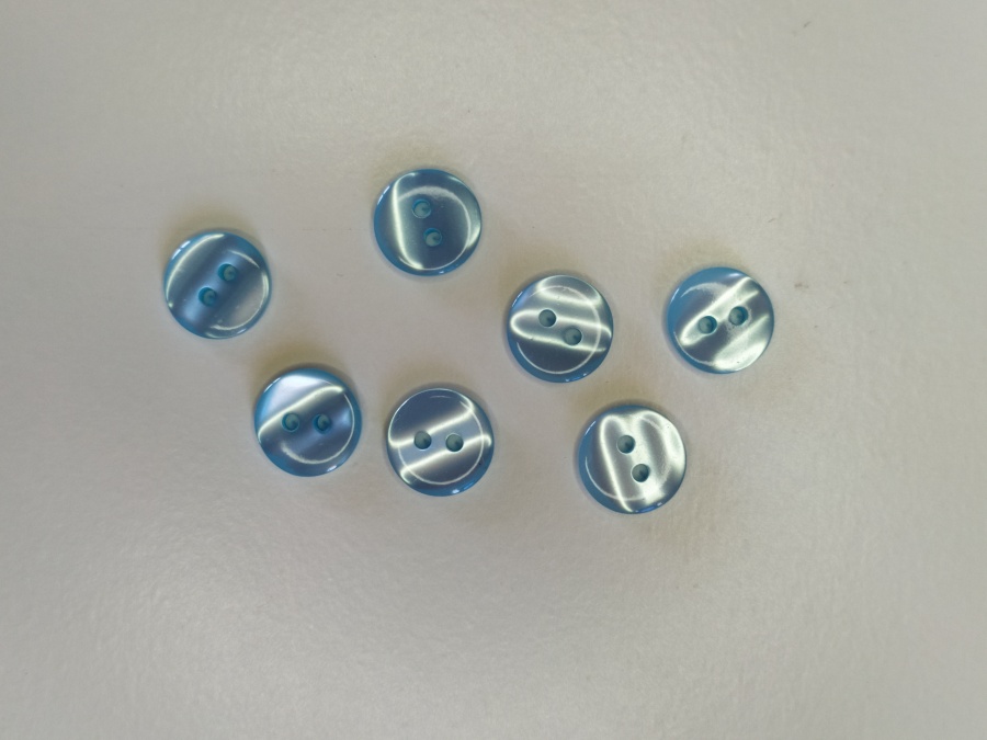 Botões redondos azuis translúcidos com dois orifícios