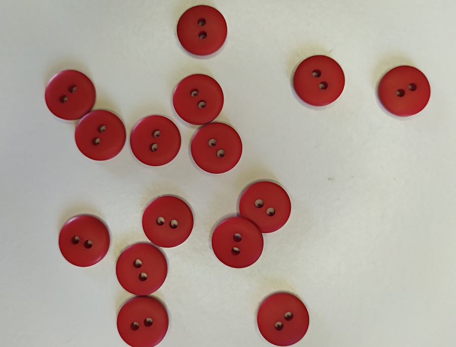 Botões vermelhos redondos com dois orifícios sobre fundo branco