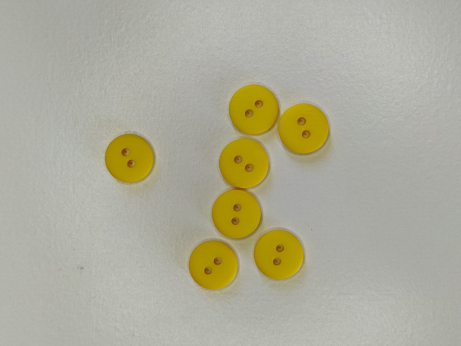 Botões amarelos redondos com dois orifícios sobre fundo branco