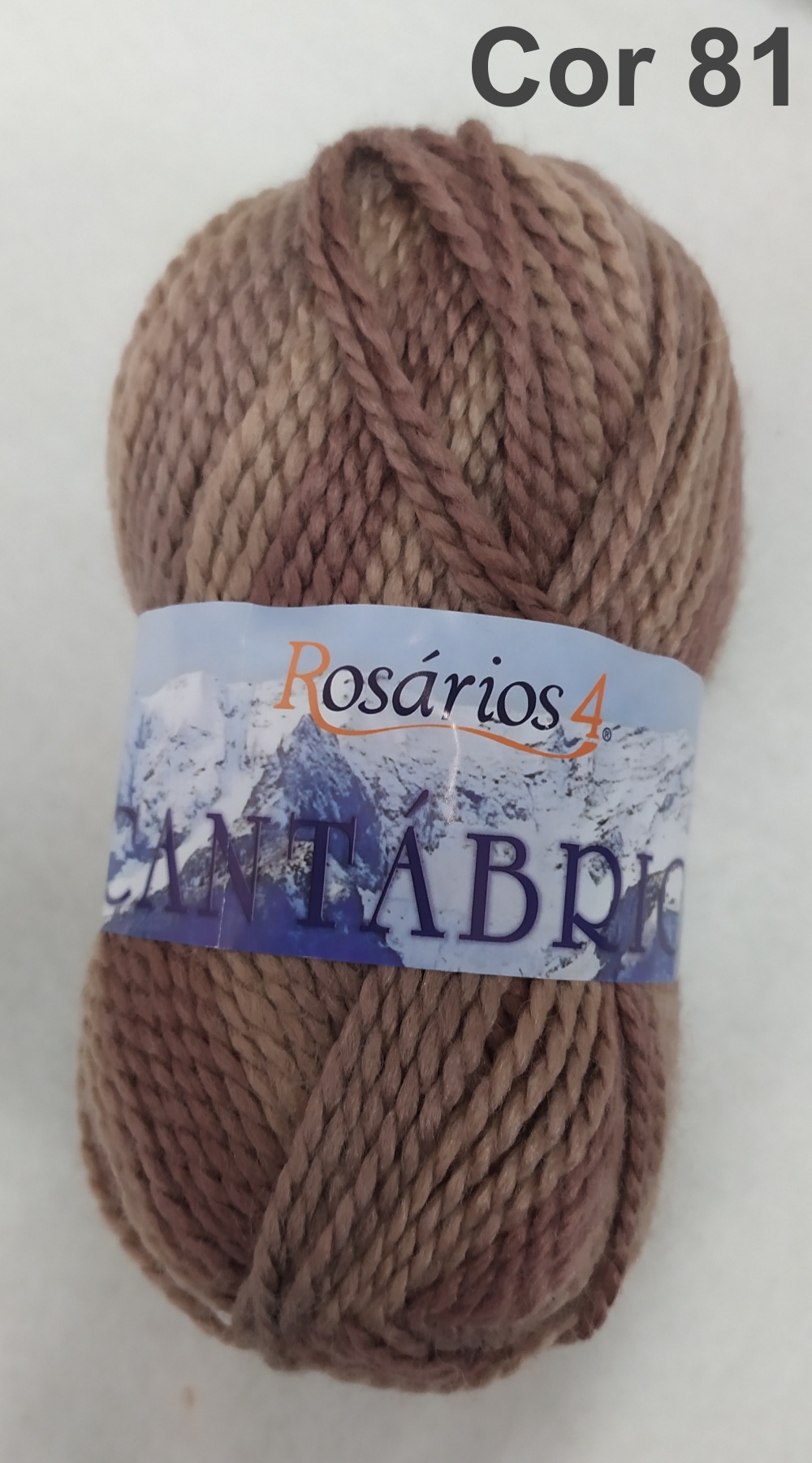 Skein de lã castanha Rosários 4 cor 81 com rótulo azul