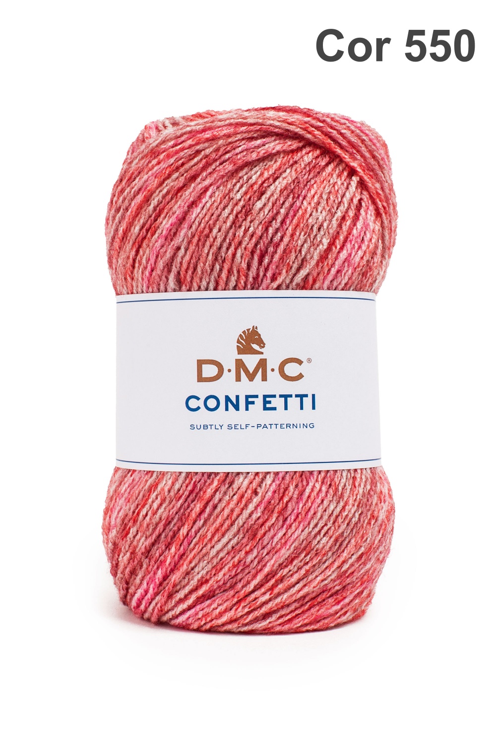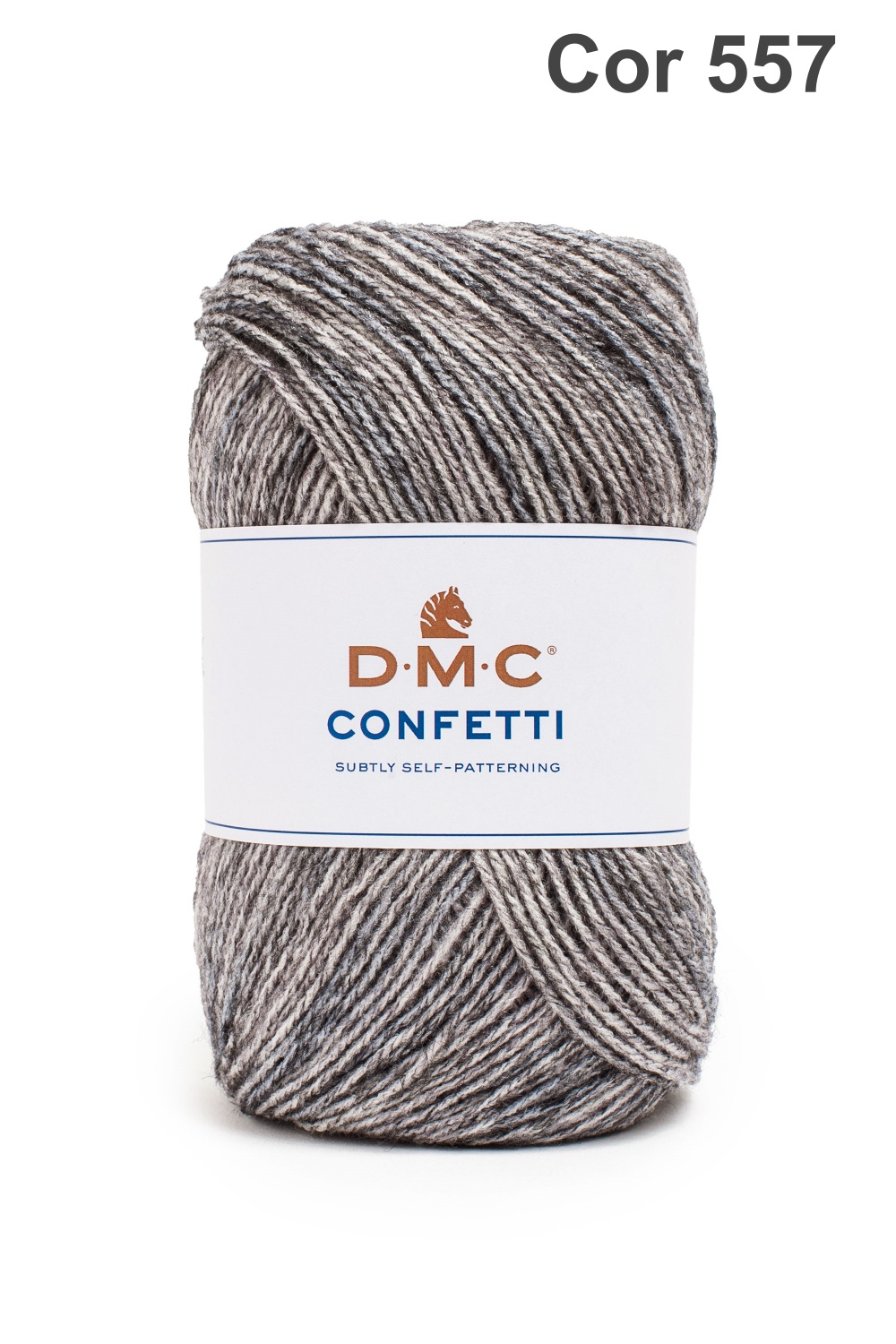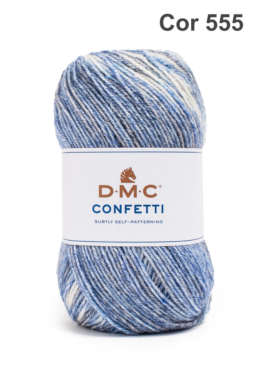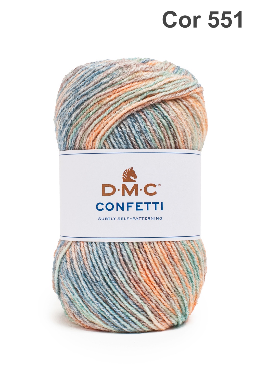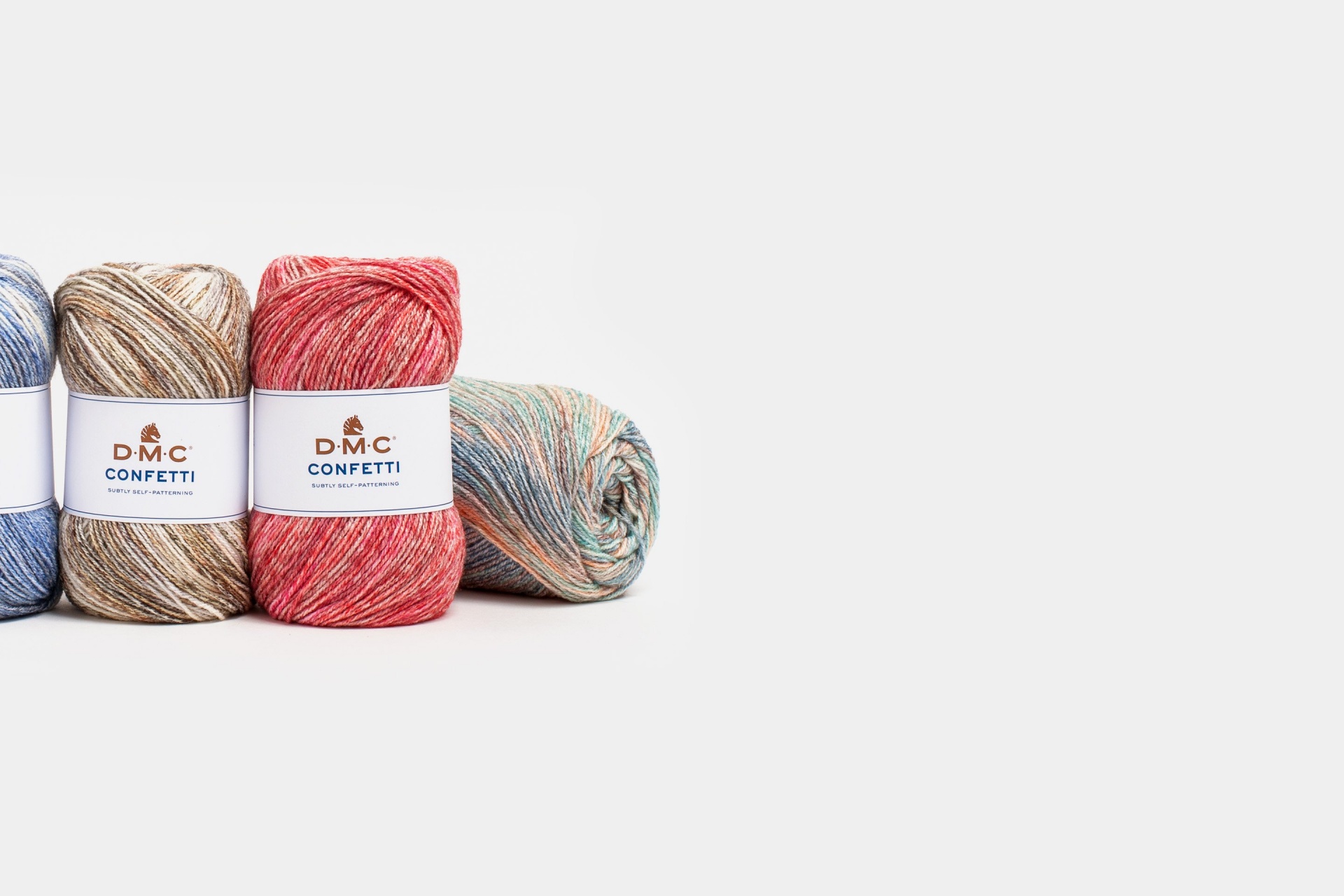 Novelos de lã coloridos com etiquetas DMC CONFETTI