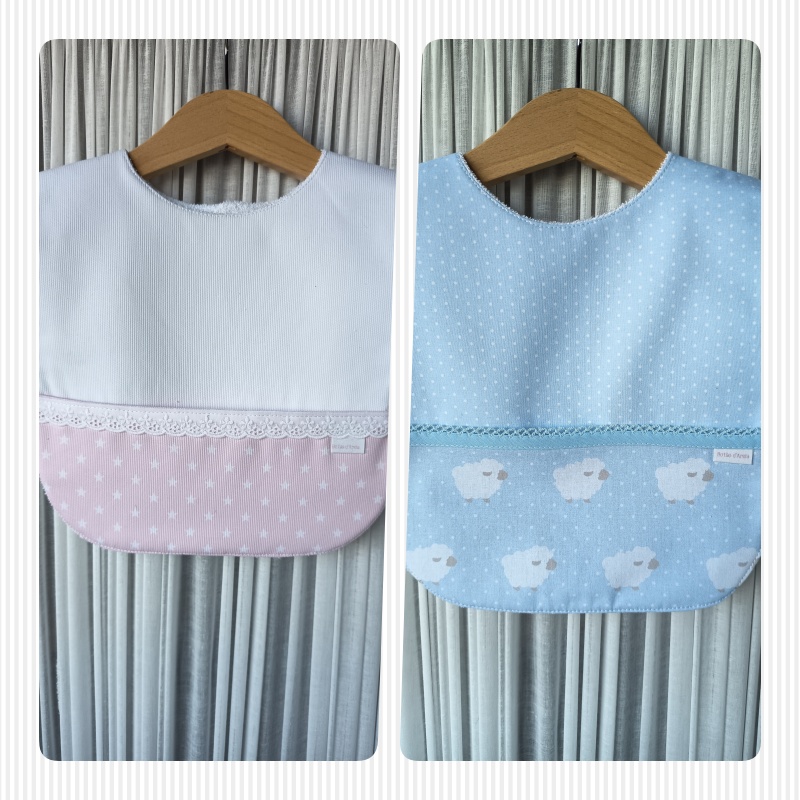 Babete em tecido 100% algodão, forrada com turco impermeável, anti alérgico e anti bacteriano.