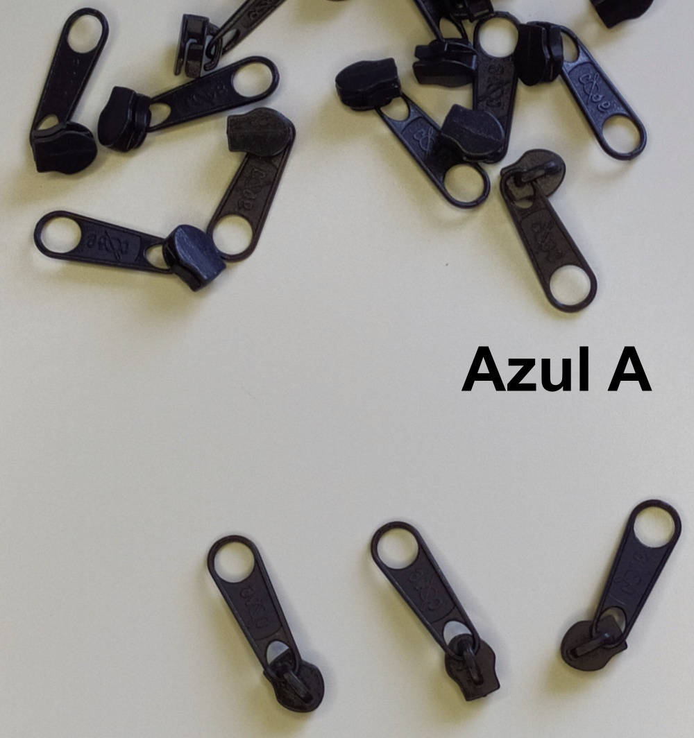 puxadores de fecho éclair azuis escuros sobre fundo branco com a palavra 'Azul'