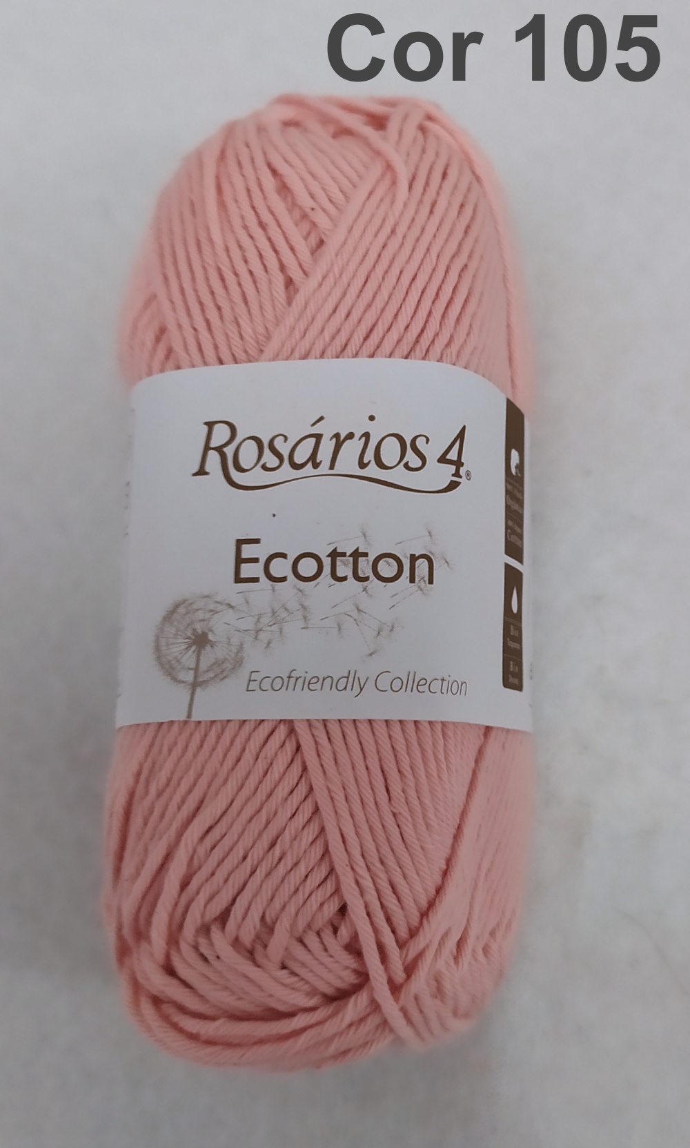 Novelo de fio cor de rosa claro com etiqueta Rosários 4 Ecotton Cor 105