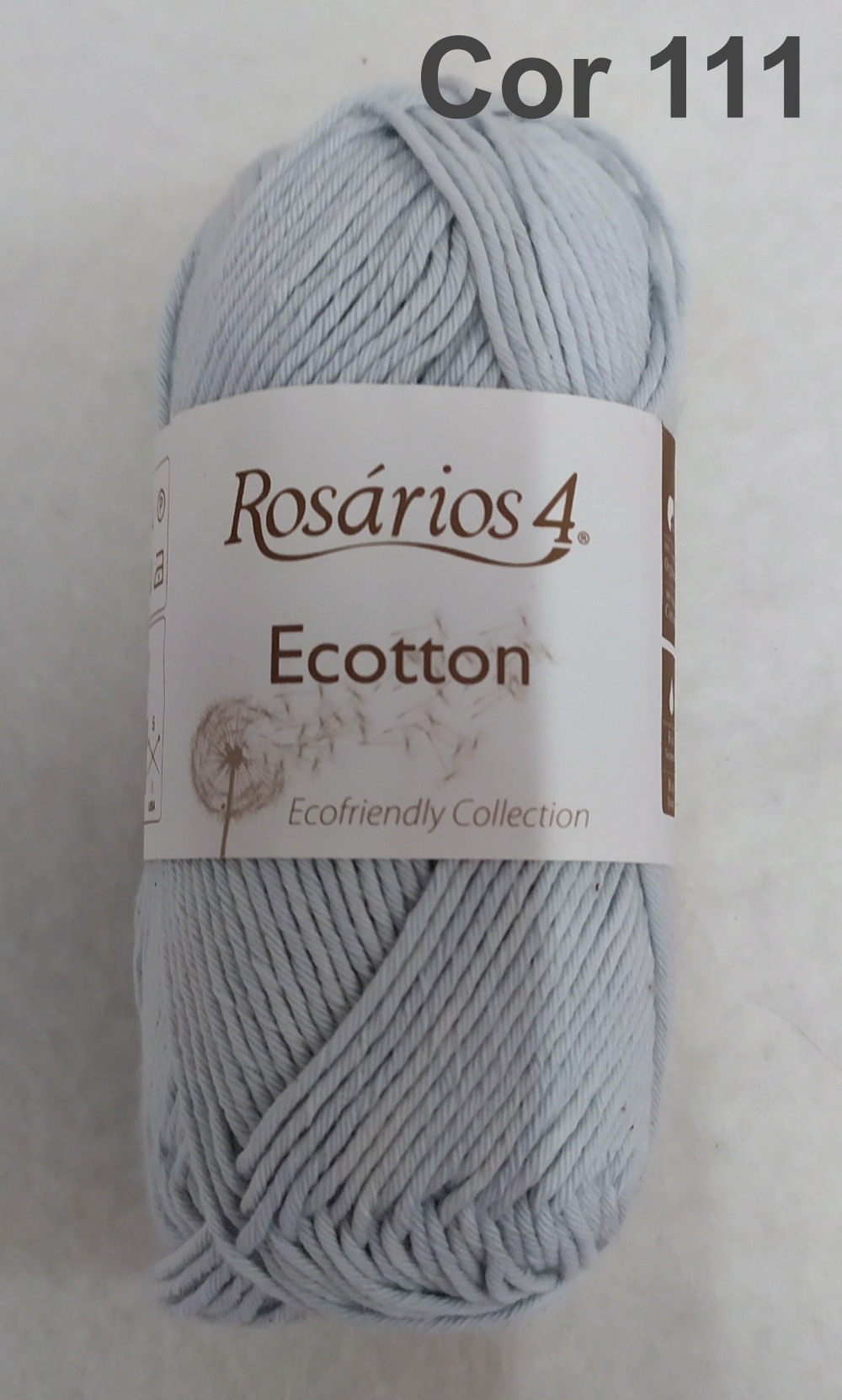 Novelo de fio de algodão Rosários 4 Ecotton cor bege claro com rótulo branco e texto castanho
