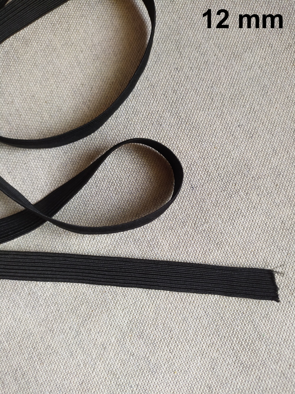 Fita elástica preta de 12 mm sobre tecido bege texturizado
