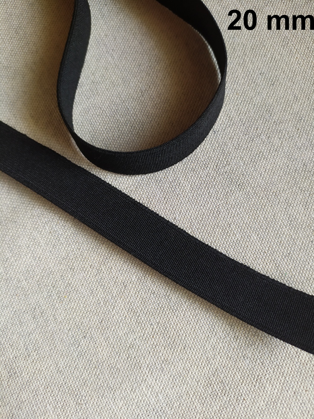 Fita têxtil preta sobre fundo claro com indicação 20 mm