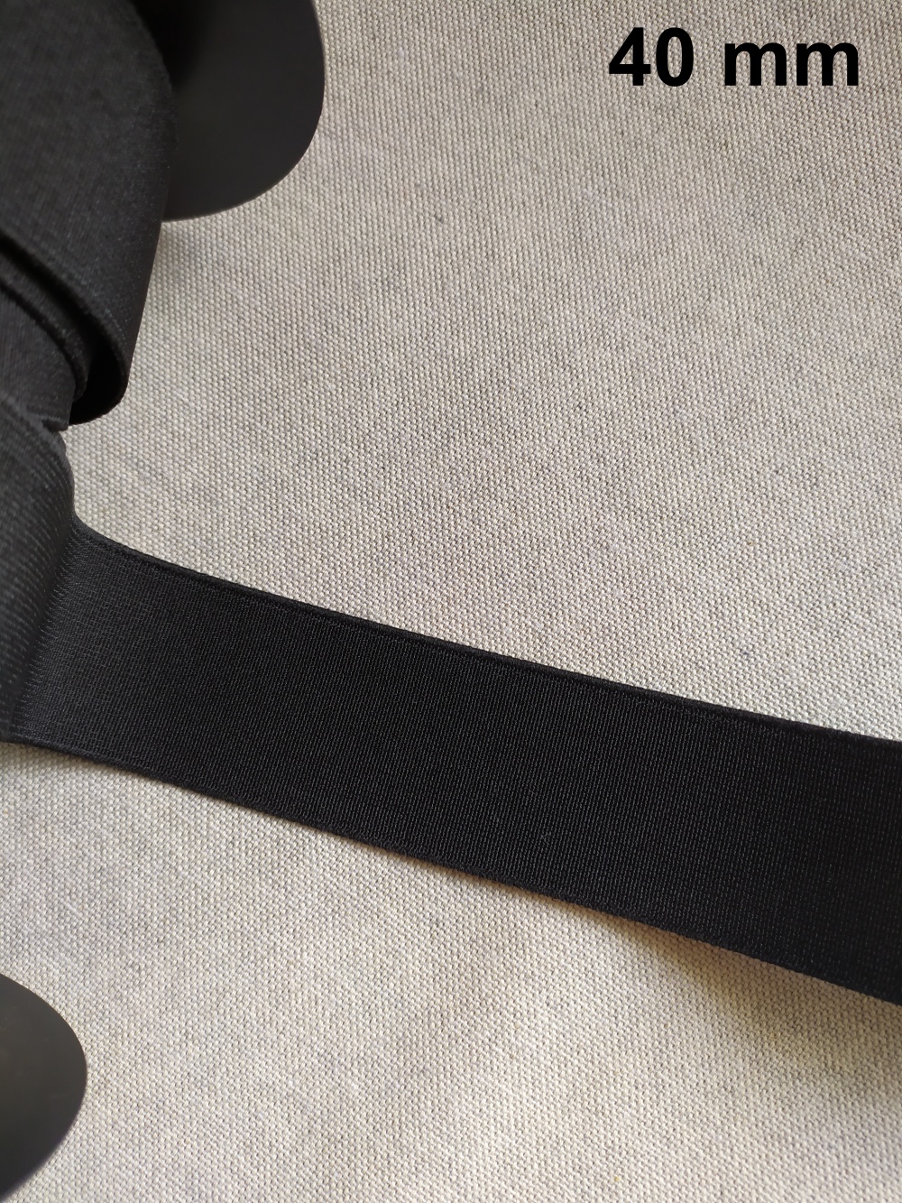Fita elástica preta de 40 mm sobre tecido cinzento claro