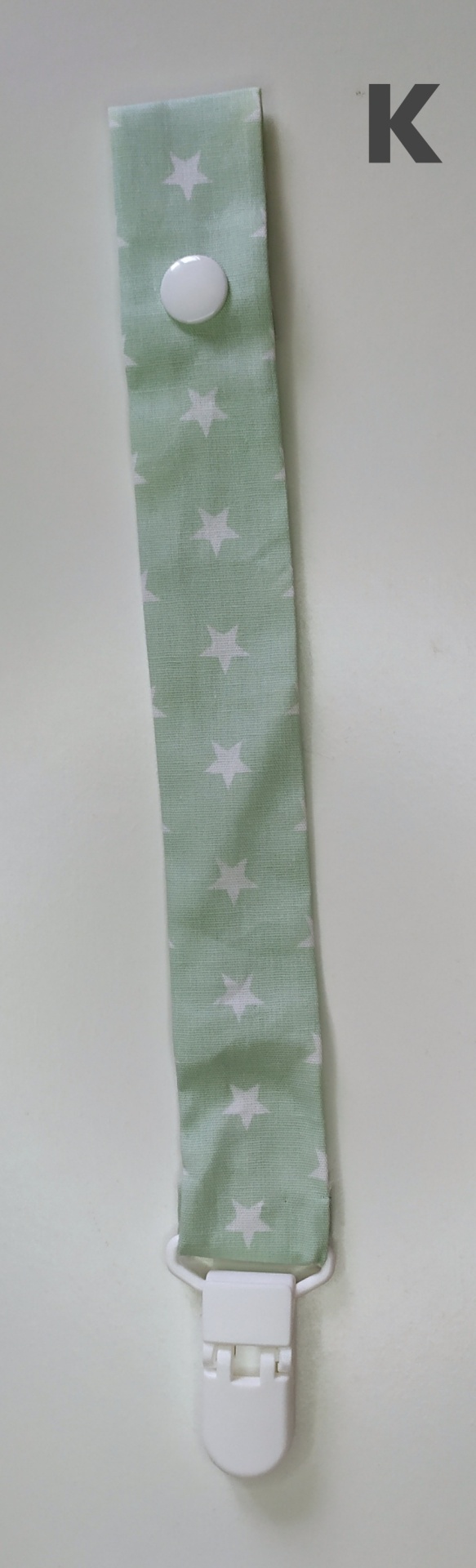 Prendedor de chucha verde claro com estrelas brancas e presilha branca