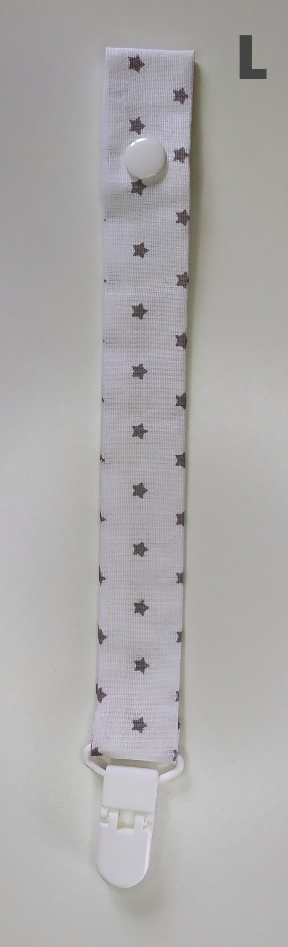 Prendedor para chucha branco com estrelas cinza e clip branco