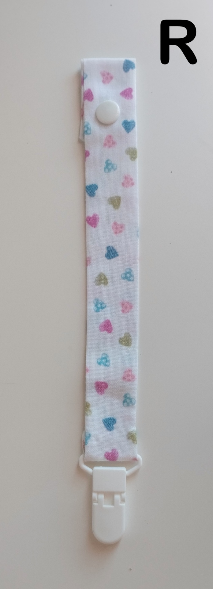 Clip para chupeta tecido branco com corações coloridos e fecho branco