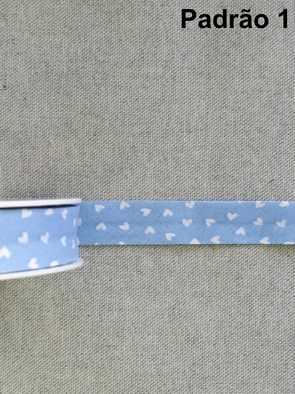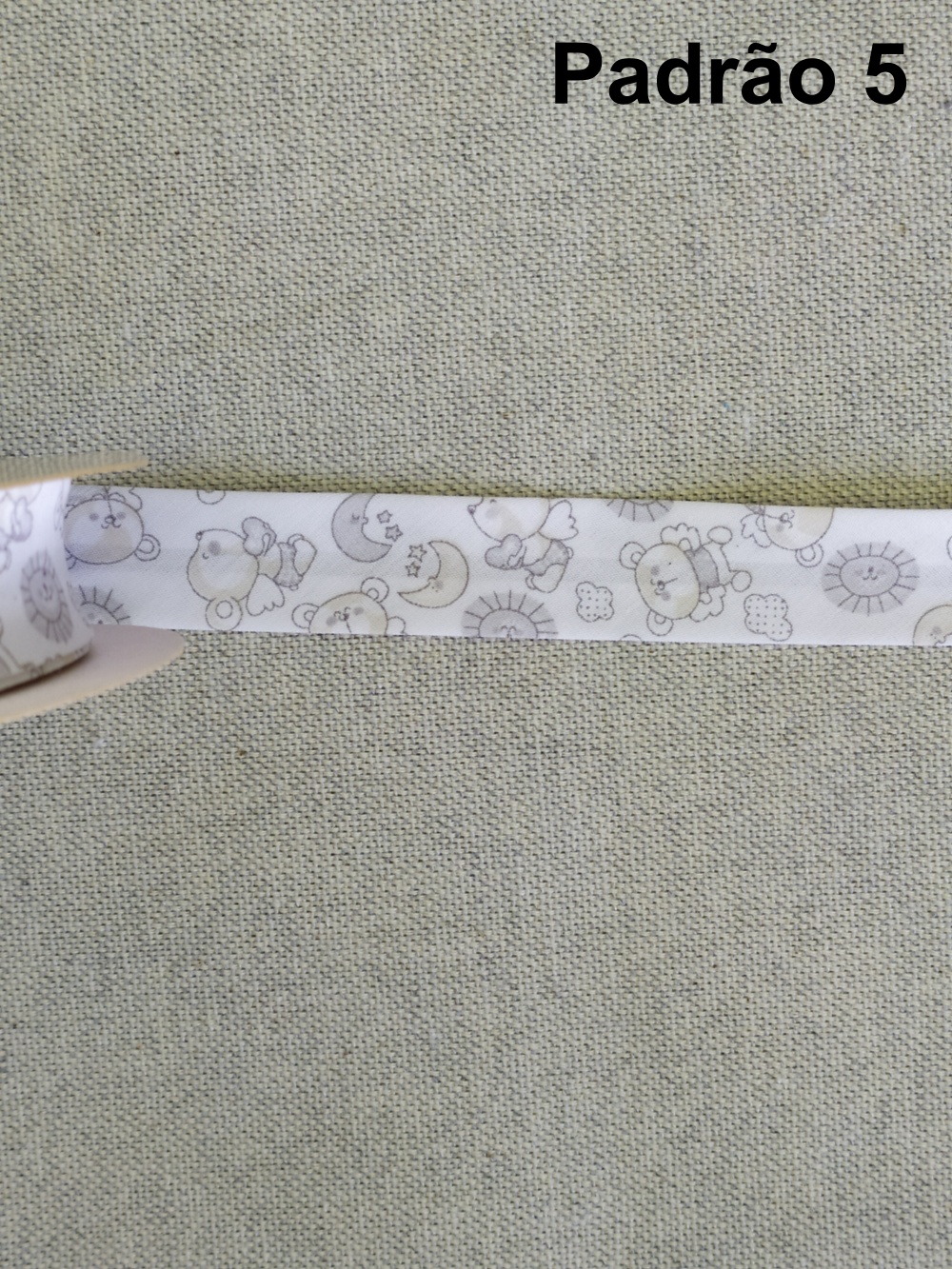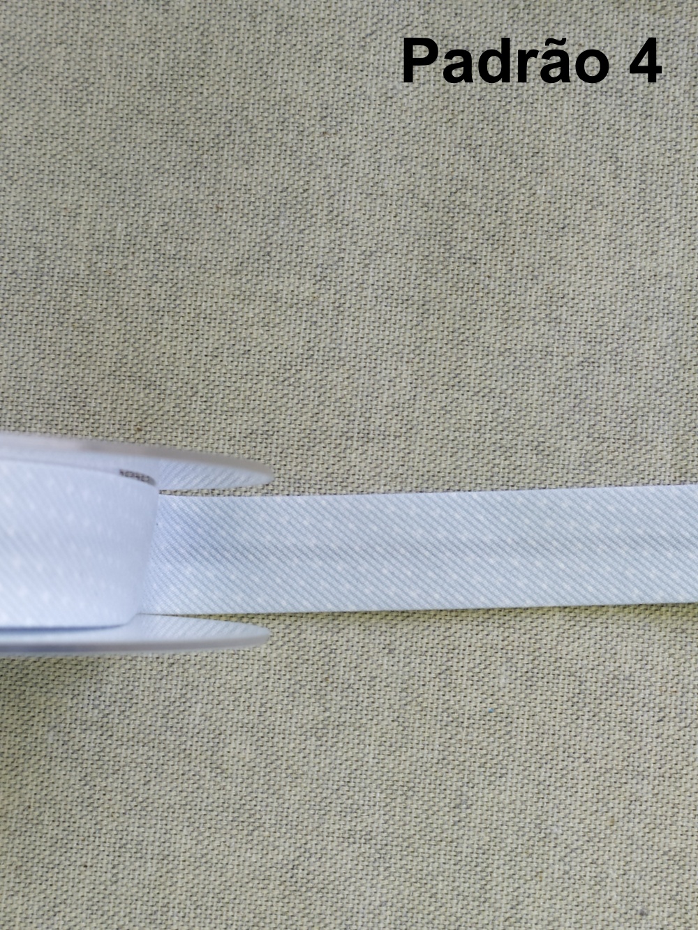 Fita branca texturizada em rolo sobre tecido bege, texto 'Padrão 4' ao fundo