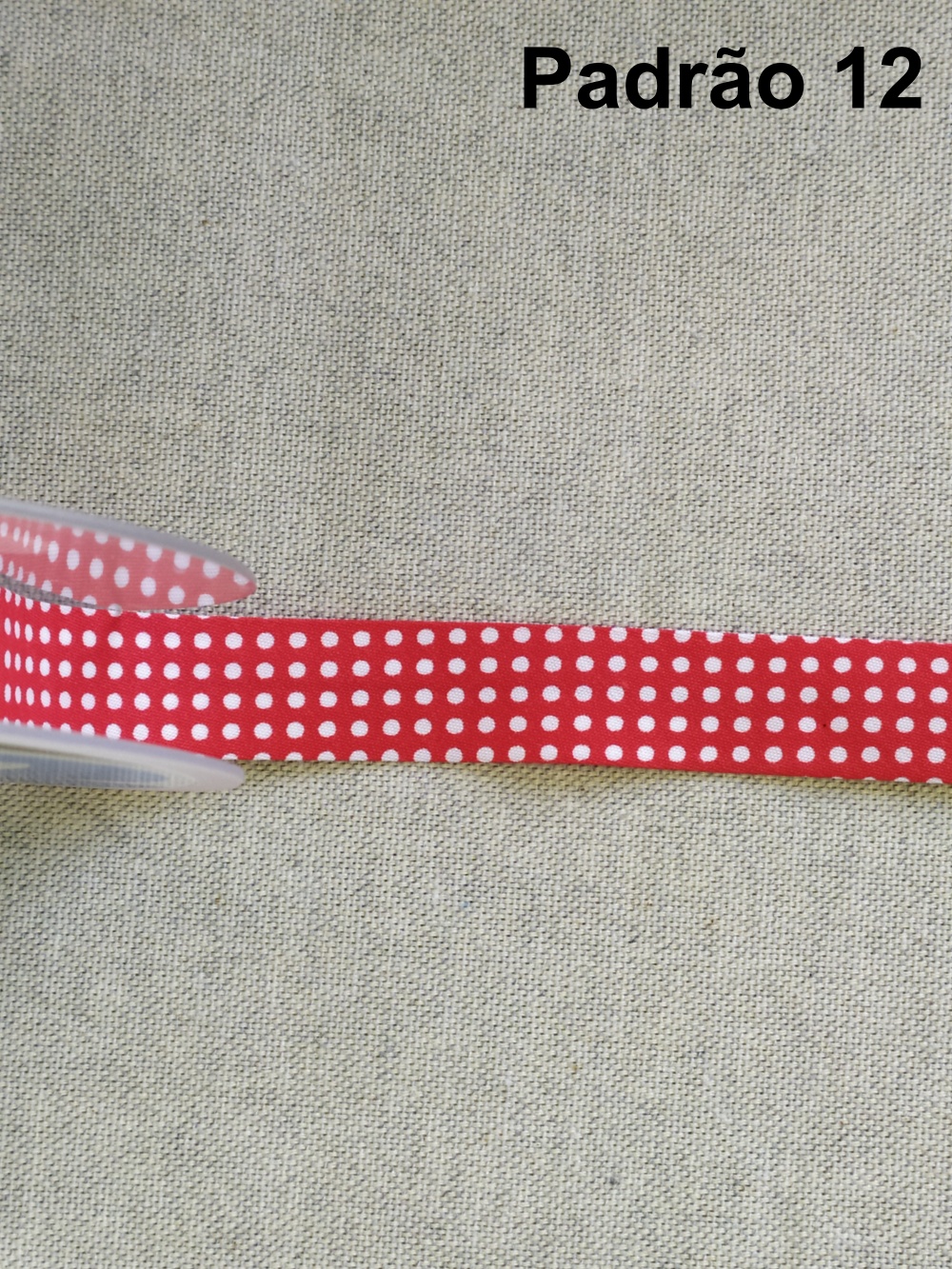 Fita vermelha com bolinhas brancas e texto Padrão 12