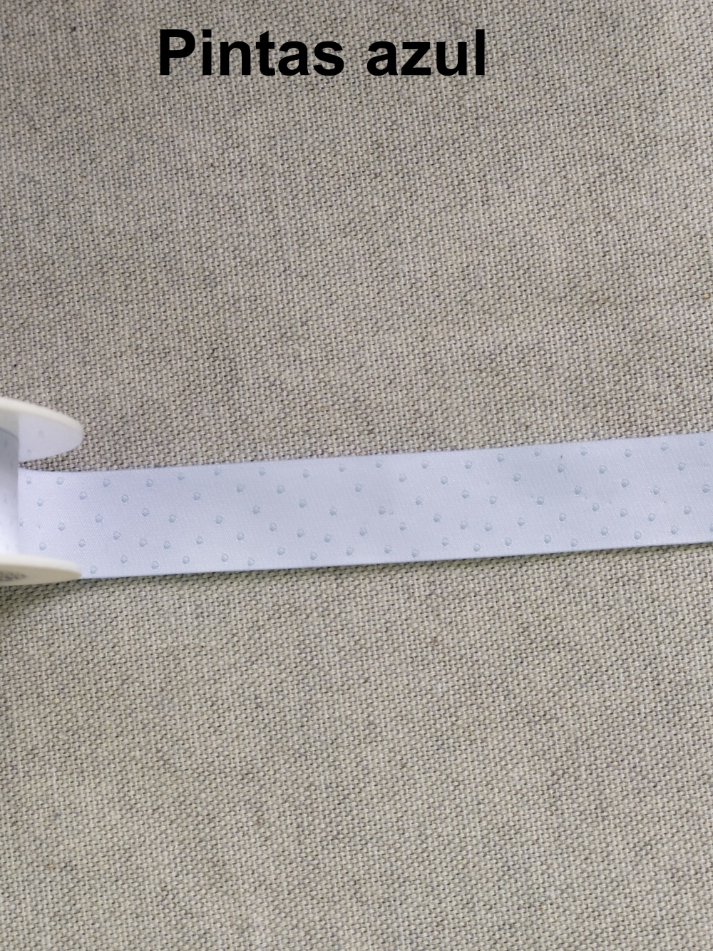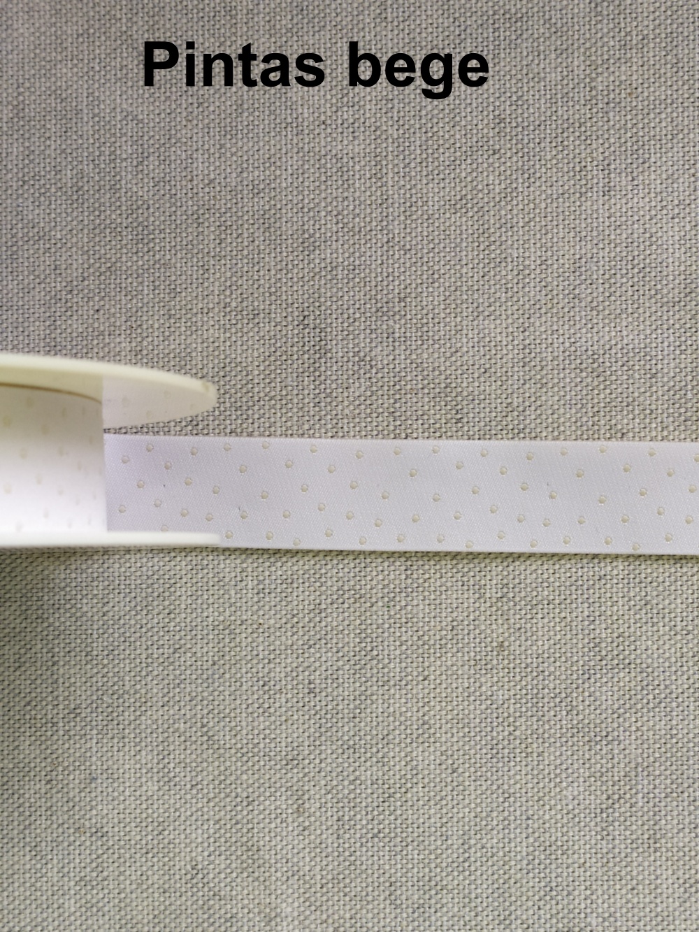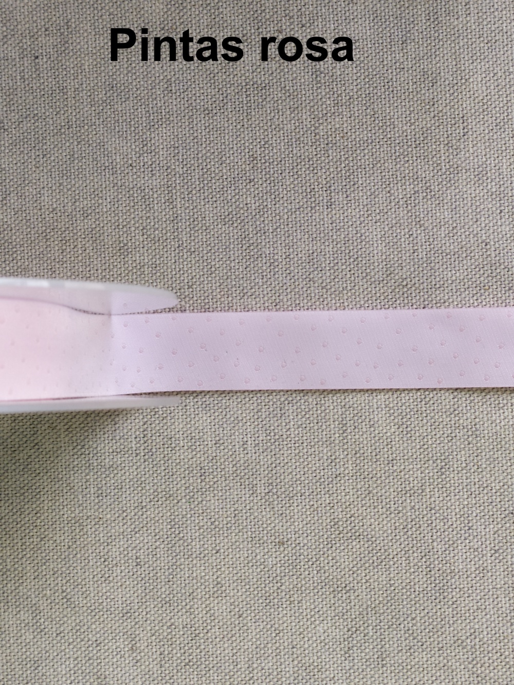 Fita cor-de-rosa clara com pintas sobre fundo de tecido cinzento