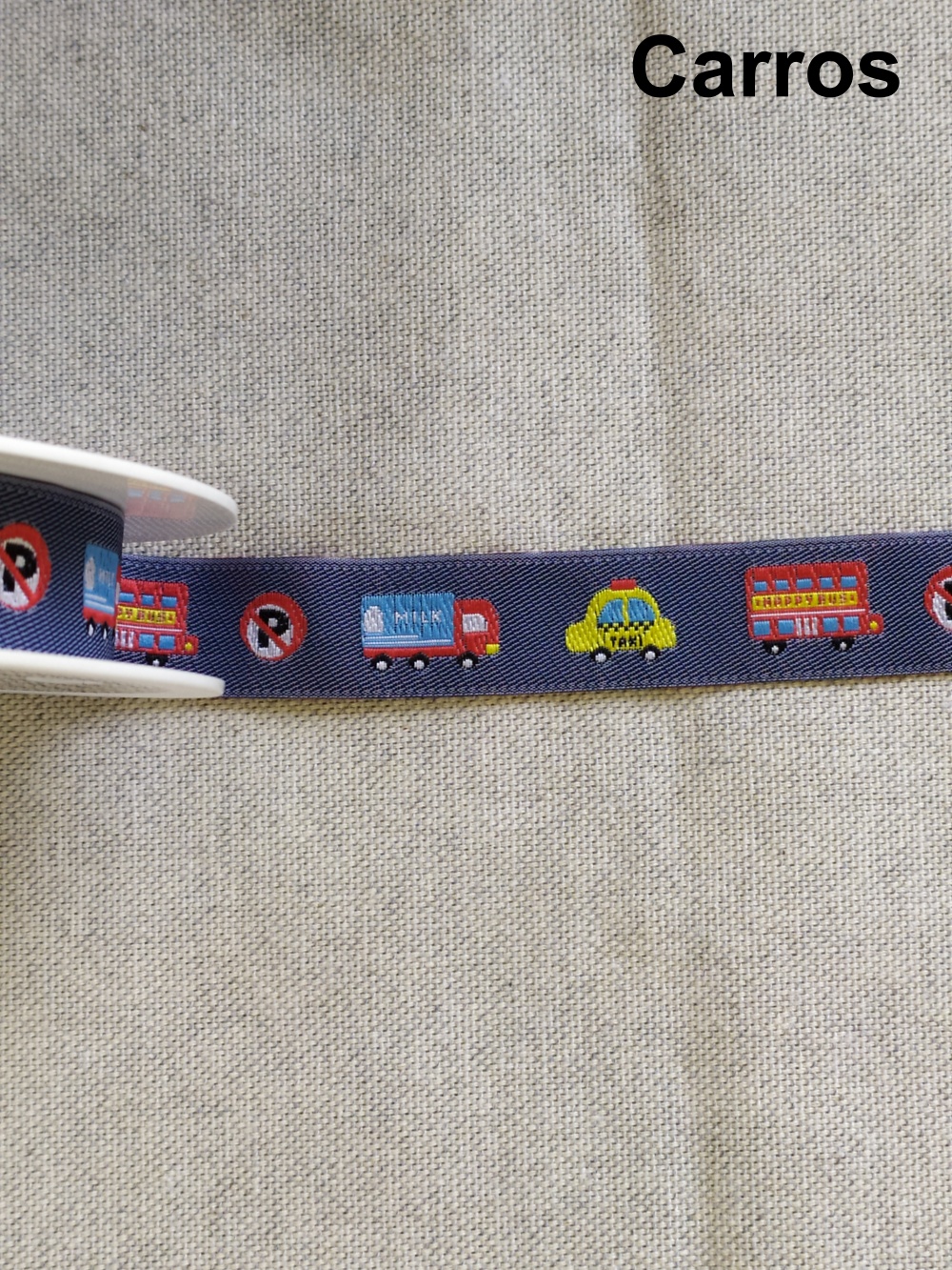 Fita decorativa azul com desenhos de veículos e sinais de trânsito
