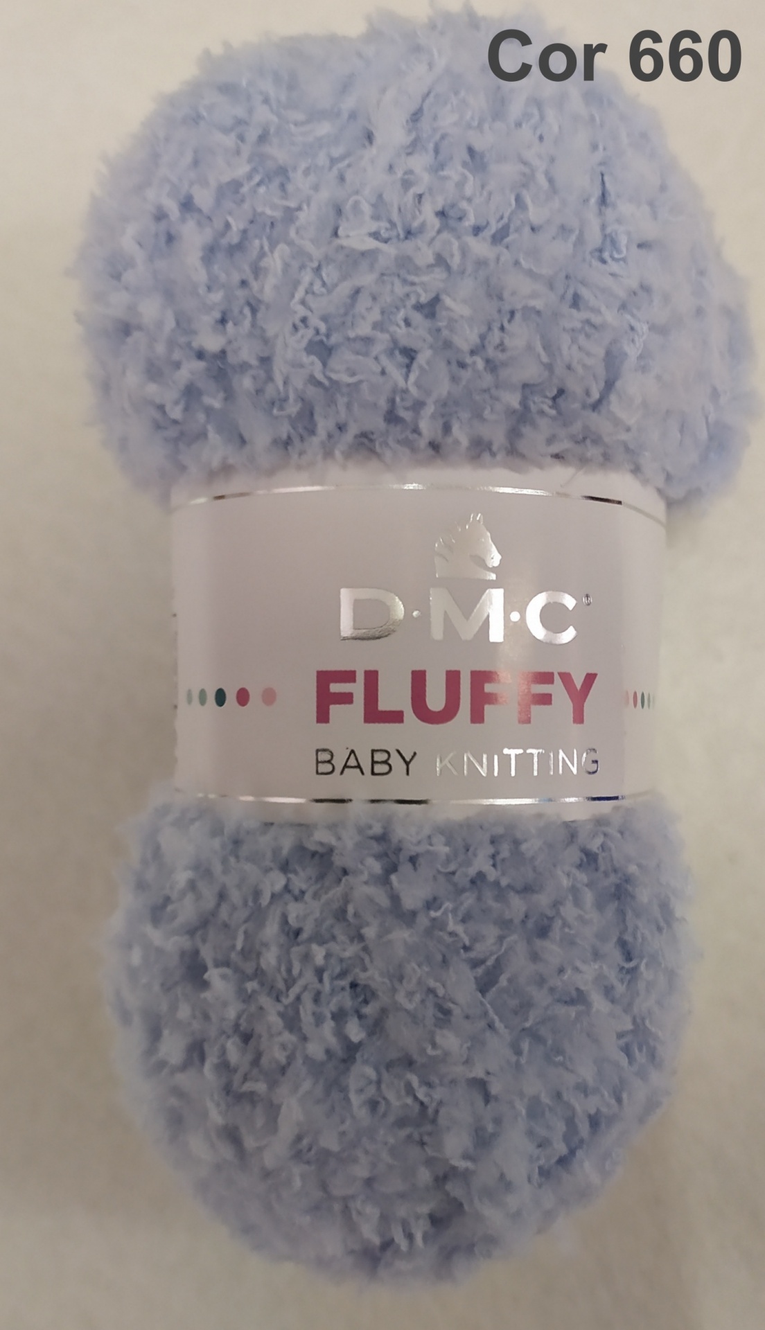Novelo de lã azul claro felpuda com etiqueta DMC FLUFFY BABY KNITTING Cor 660