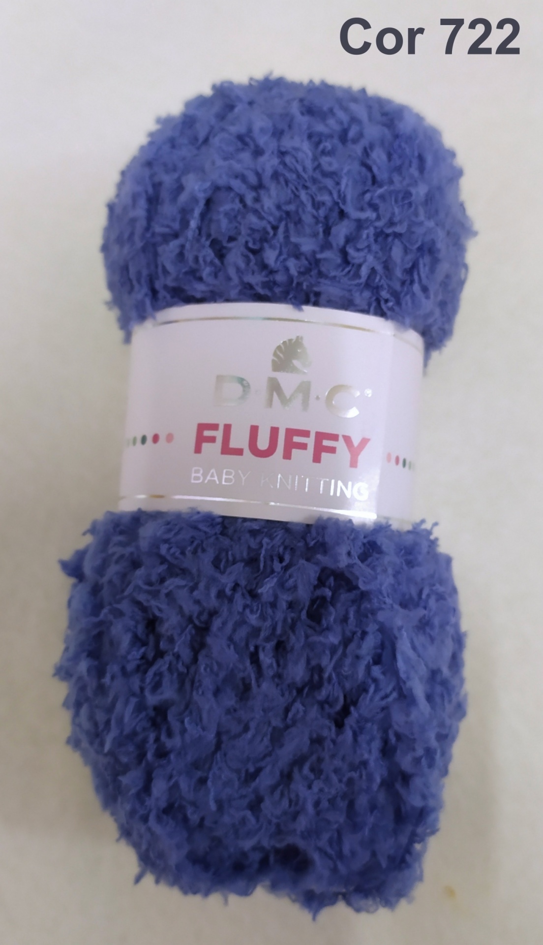 Skein de lã azul felpuda DMC FLUFFY BABY KNITTING cor 722 com etiqueta branca