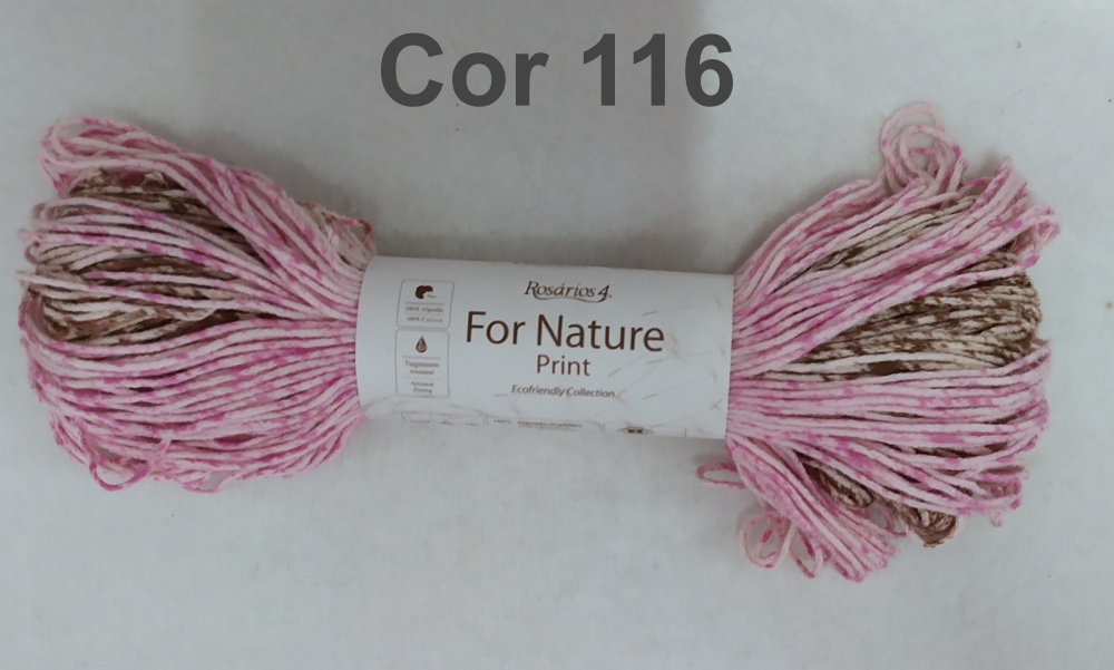 Novelo de fio rosa e castanho com rótulo For Nature Print Cor 116