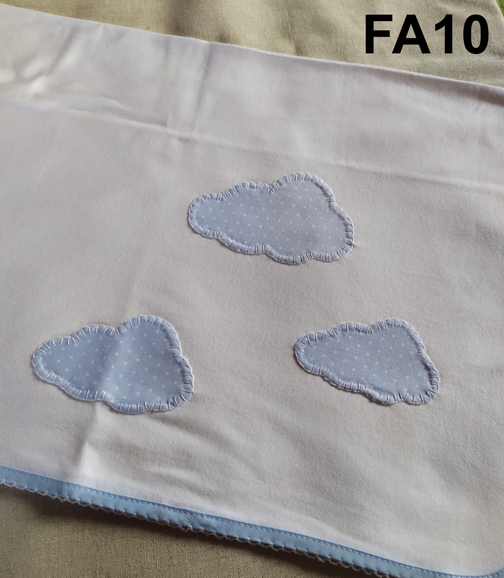 Pano branco com nuvens azuis aplicadas e texto FA10