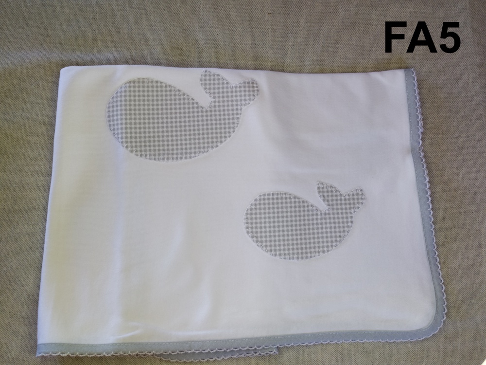 Manta branca com baleias cinzentas e bainha cinzenta