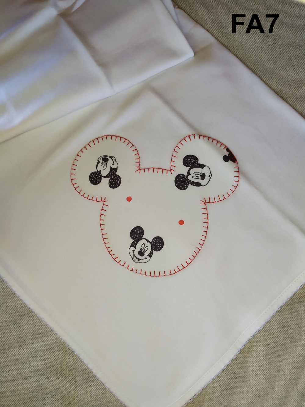 Fralda branca com bordado do Mickey Mouse e código FA7