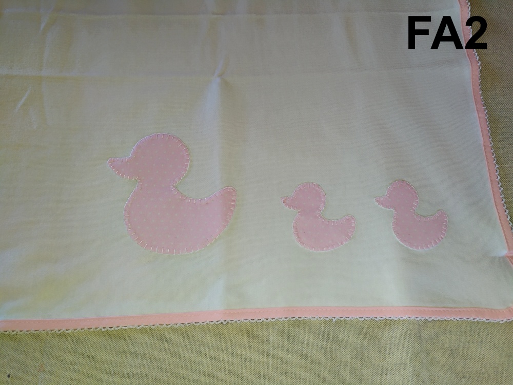 Toalha branca com borda rosa e patinhos bordados