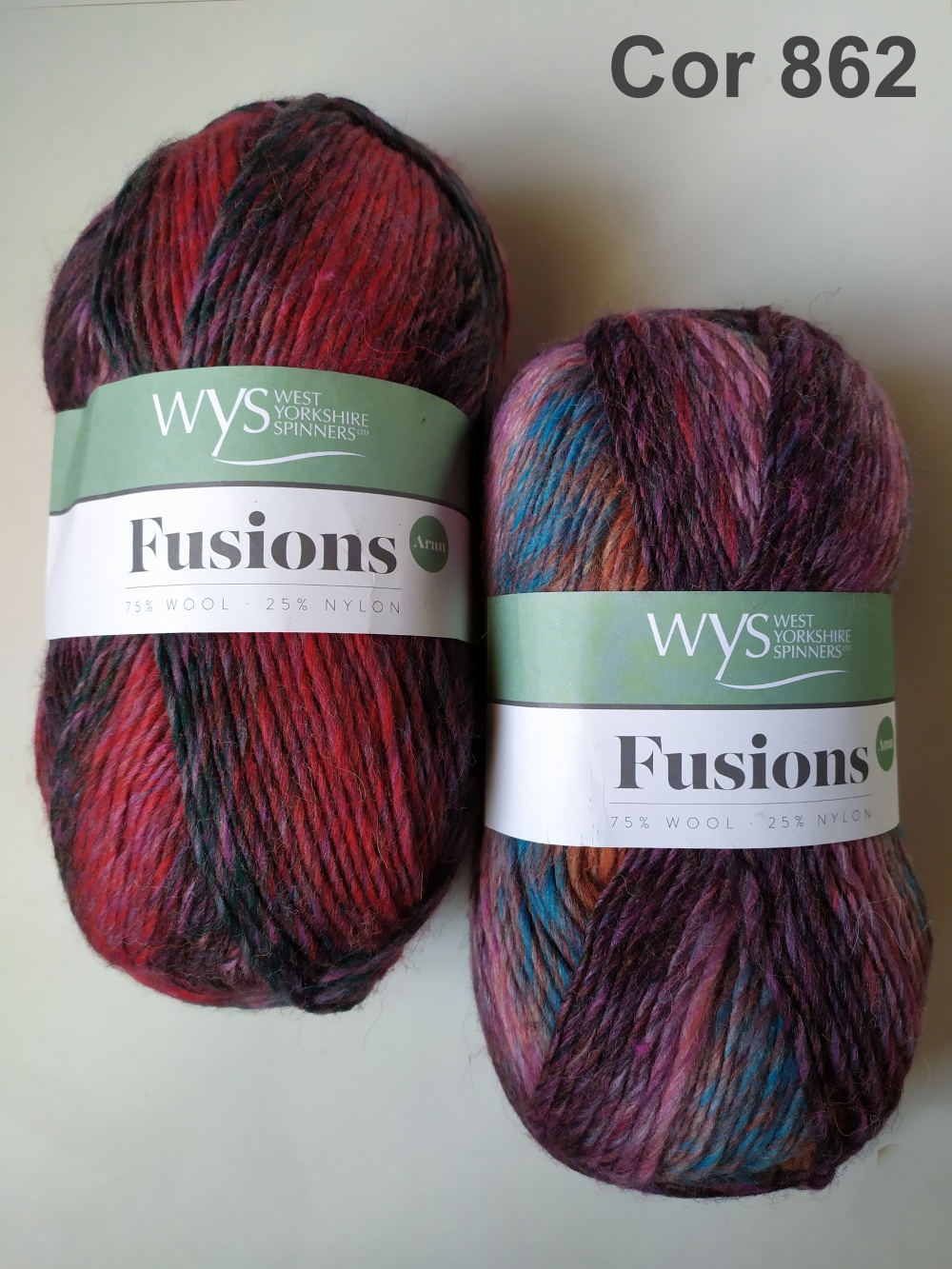 Duas bolas de lã multicolorida WYS Fusions Cor 862