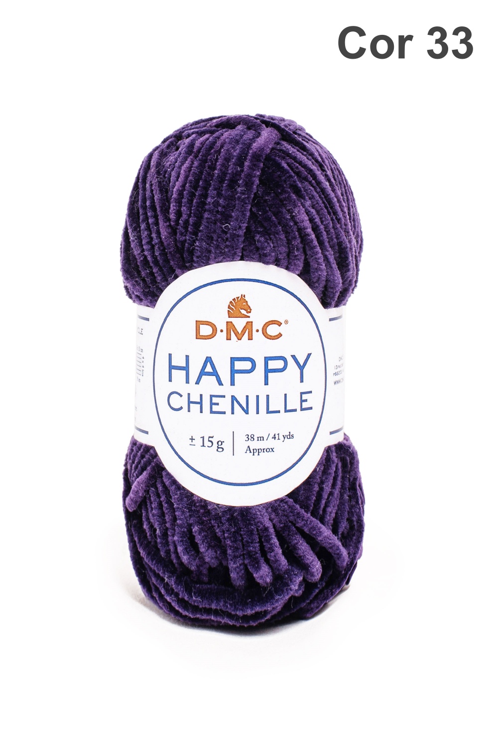 Novelo de lã roxo escuro DMC Happy Chenille com etiqueta