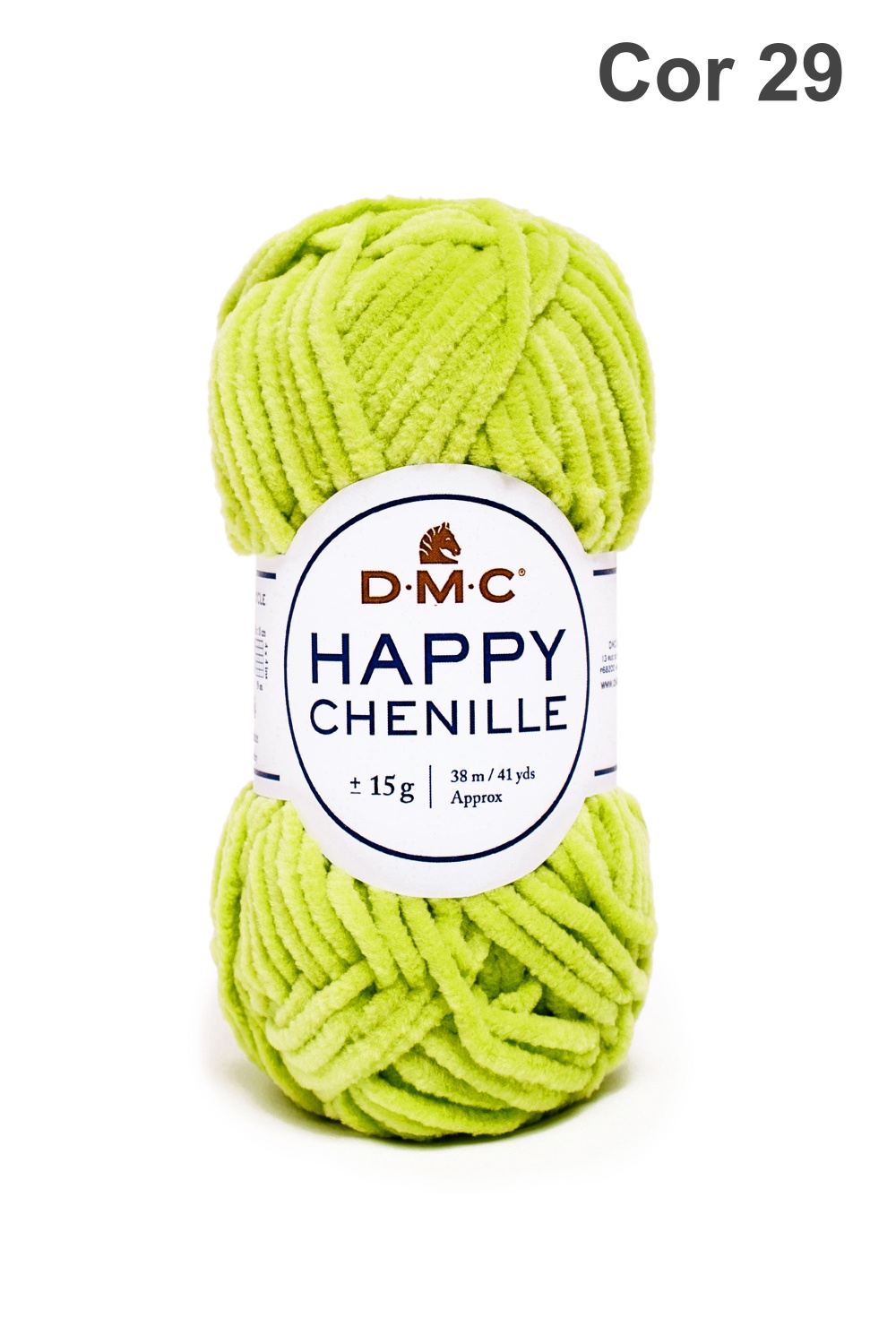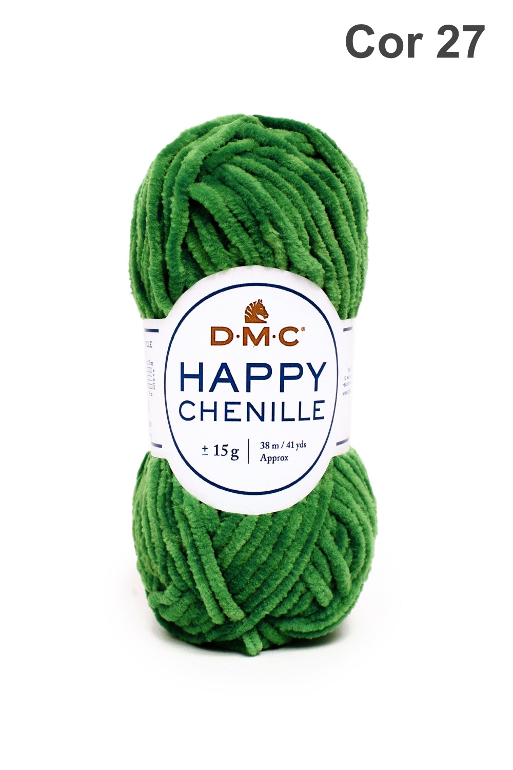 Novelo de fio chenille verde DMC Happy Chenille Cor 27