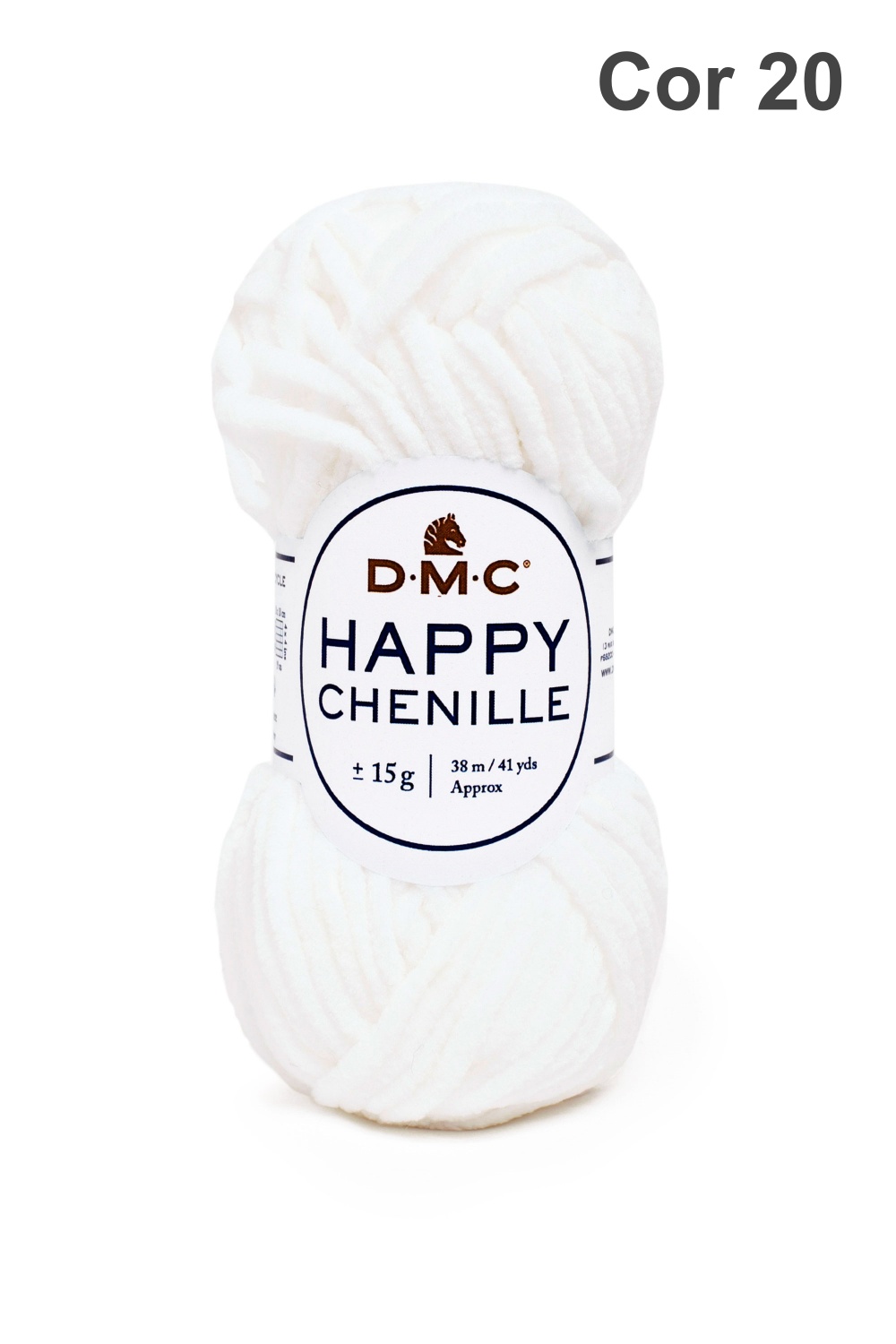 Novelo de fio chenille branco da marca DMC com etiqueta e número de cor 20