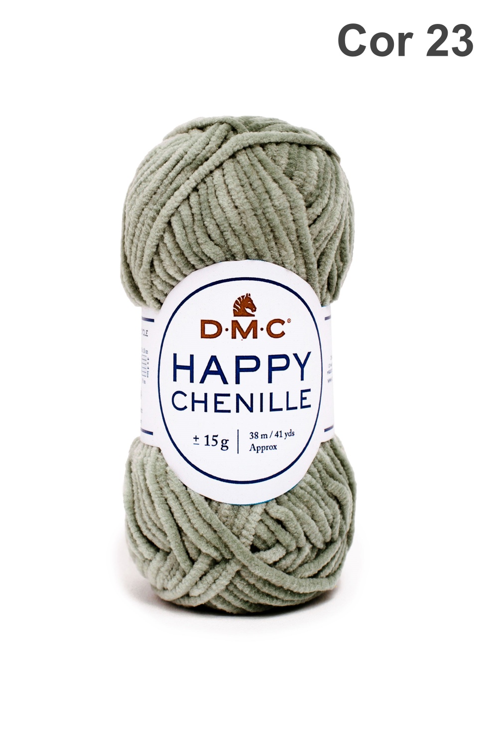 Novelo de fio chenille DMC Happy Chenille cor 23 cor verde cinza claro