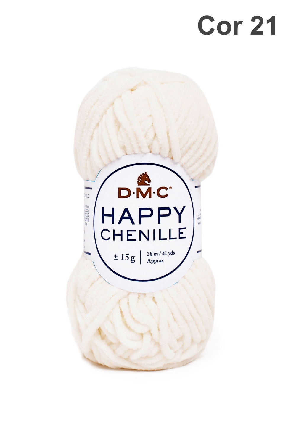 Novelo de lã chenille creme com etiqueta D.M.C Happy Chenille Cor 21