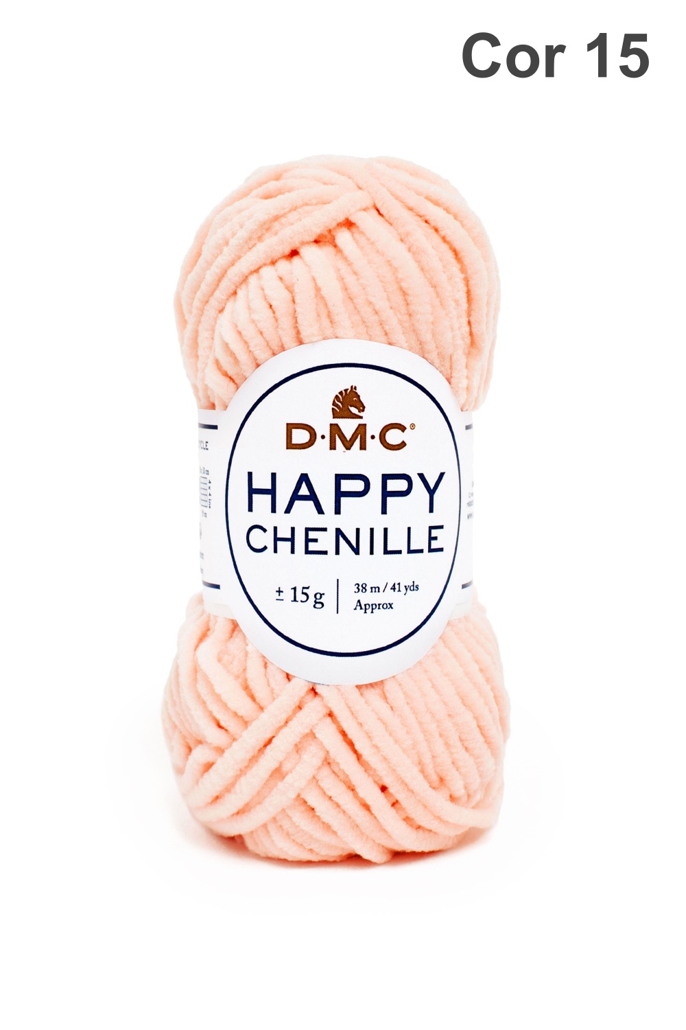 Novelo de lã chenille cor rosa claro com etiqueta DMC Happy Chenille