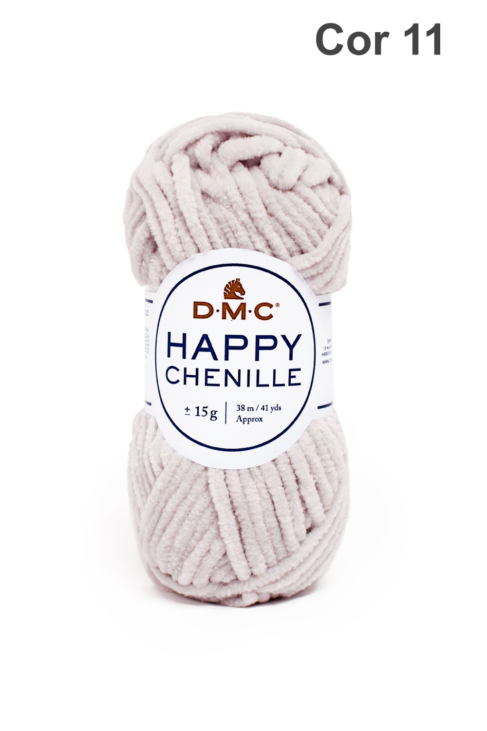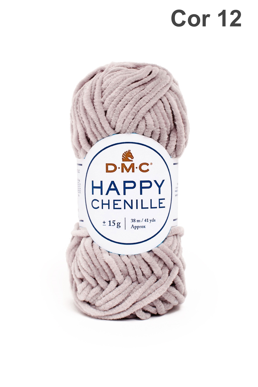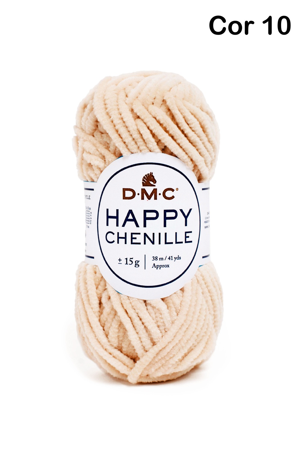 Novelo de fio chenille bege com etiqueta D.M.C HAPPY CHENILLE