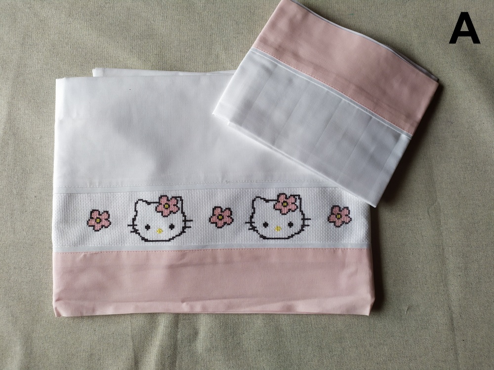 Fraldas de bebé com bordados de pinguins e Hello Kitty