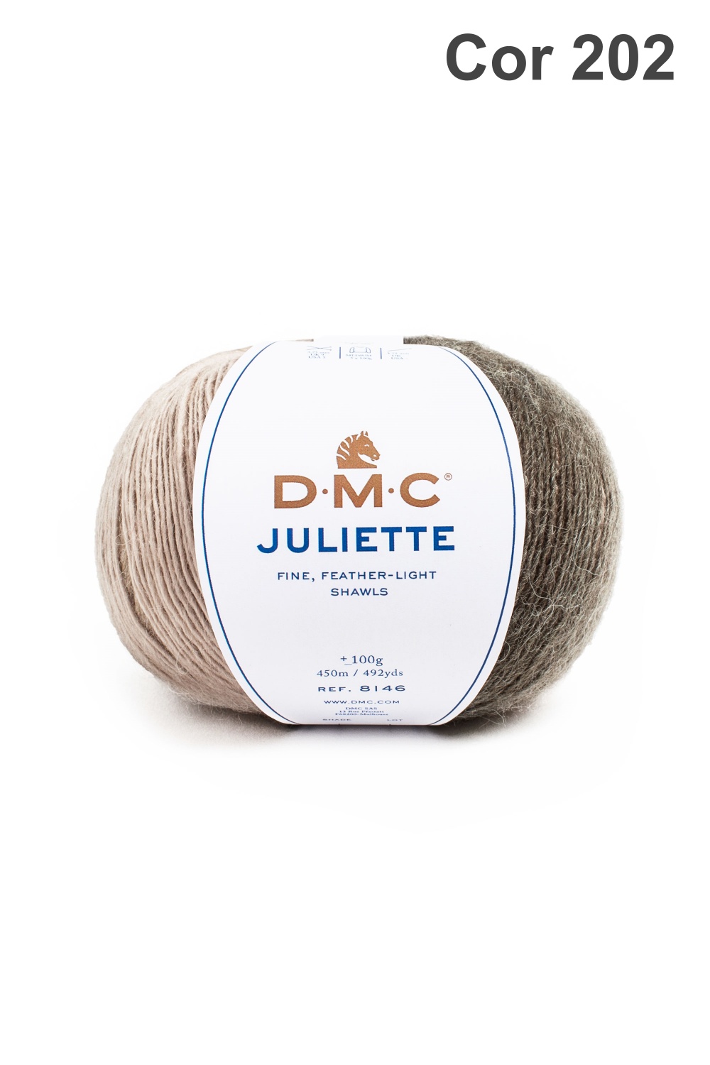 Novelo de lã DMC Juliette bege e castanho com etiqueta branca