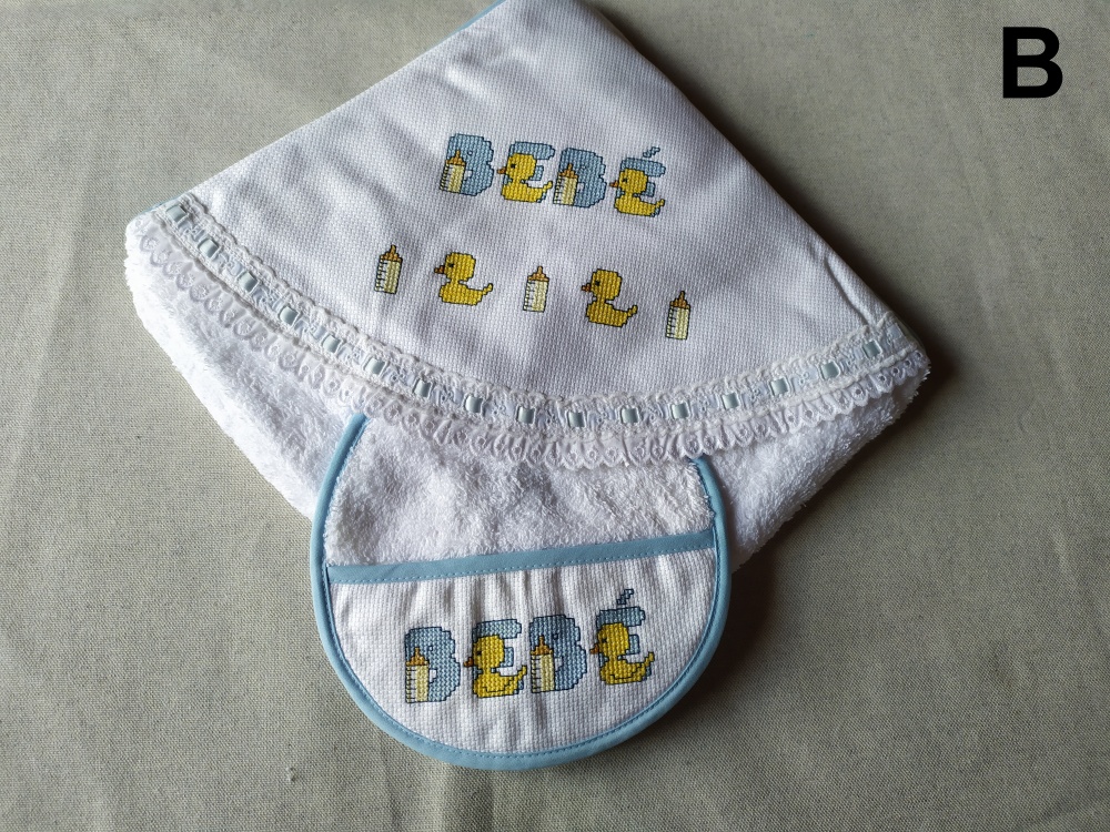 Lençol de banho para bebé bordado à mão.